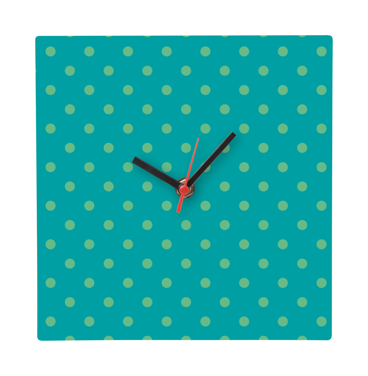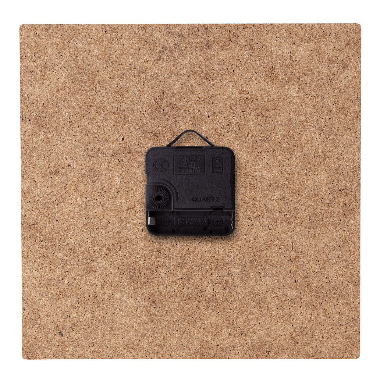 Custom made, square shaped HDF wood wall clock with custom graphic. Operates with 1 AA battery, without battery. MOQ: 50 pcs.