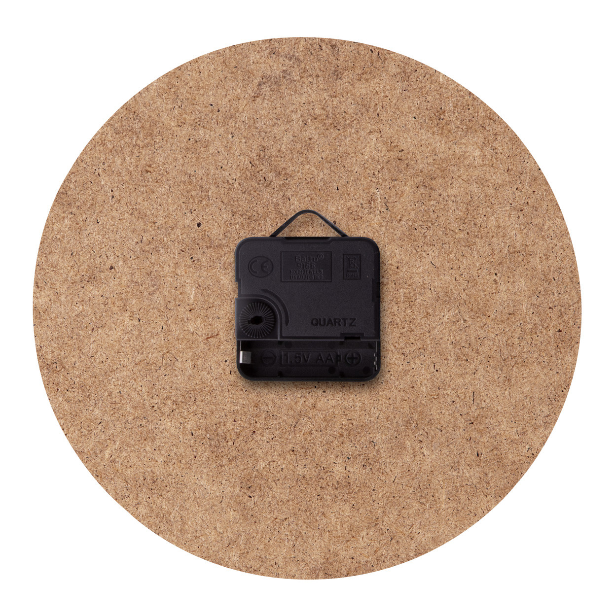 Custom made, round shaped HDF wood wall clock with custom graphic. Operates with 1 AA battery, without battery. MOQ: 50 pcs.