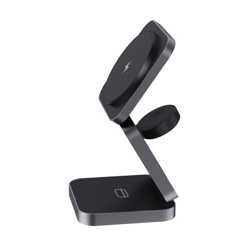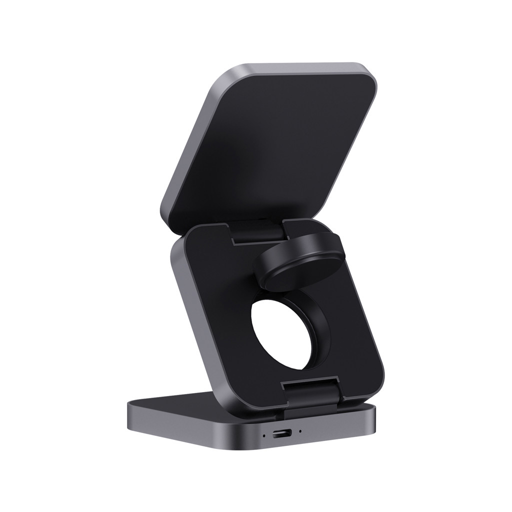 This versatile charger features a high-speed 15W magnetic wireless charger for smartphones, a 5W output pad ideal for earbuds, and a 2.5W charger for smartwatches (Apple Watch compatible). The foldable design makes it both space-saving and ideal for travel, while the included 120cm cable made from RCS-certified recycled TPE ensures responsible connectivity.