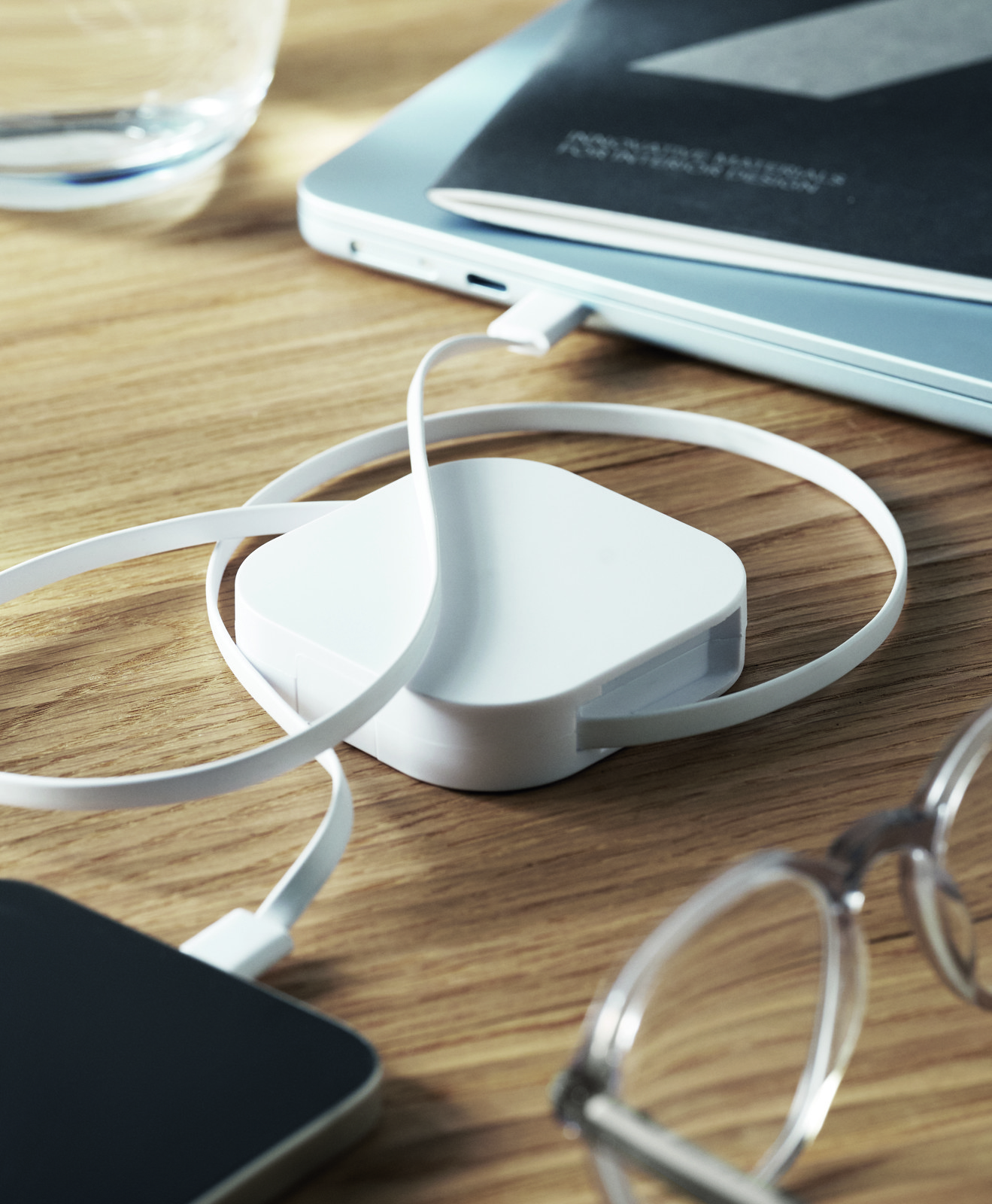 Izdelan je iz trpežnega PVC materiala in tehta samo 31 g, je lahek in prijazen do potovanja — kot nalašč za življenje na poti. Kabel Ligo, ki meri 44 mm v premer in 7 mm v širino, je dovolj kompakten, da ga spravite v vsak žep, torbo ali aktovko.