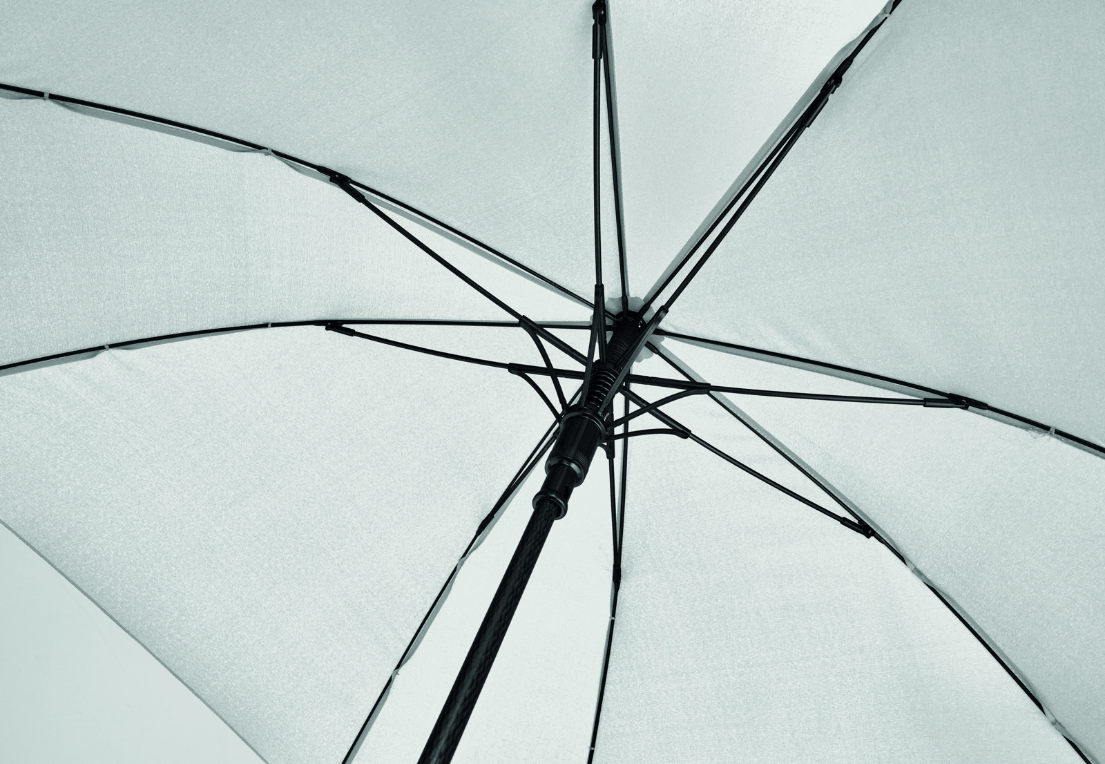 69 cm samodejno odprt dežnik v 190T pongeeju s črno prevlečeno kovinsko gredjo in rebri. Črni plastični nasveti. Raven črn EVA ročaj. Ročno zapiranje.