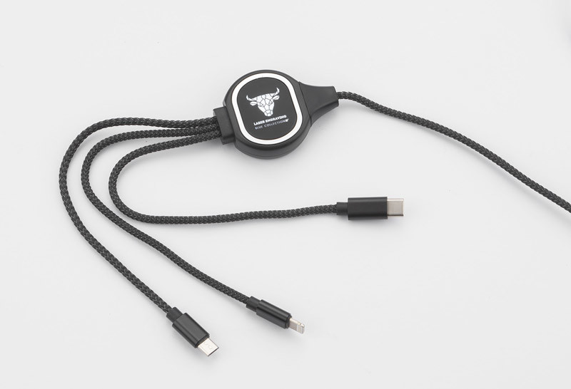 Polnite pametneje in promovirajte v stilu s praktičnim in elegantnim izvlečnim kablom 3-v-1 iz zbirke XD. Ta inovativni pripomoček je zasnovan za udobje in vsestranskost ter vsebuje priključke za naprave Type-C, iOS in Micro USB—zaradi česar je popolno darilo za vsakega uporabnika tehnologije.