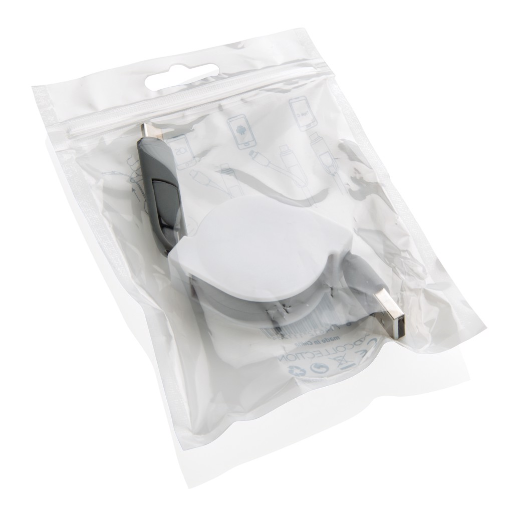 S poudarkom na trajnosti ima ta izdelek nizek CO2 odtis le 0,24 kg. Na voljo je privlačno zapakiran v polietilensko vrečko, pripravljeno za poenostavljeno distribucijo podjetij. Ne glede na to, ali napajate svoje naprave ali povečujete prisotnost svoje blagovne znamke, je ta vrhunski polnilni kabel premišljeno in praktično promocijsko darilo, ki ga bodo cenile vaše stranke in partnerji.