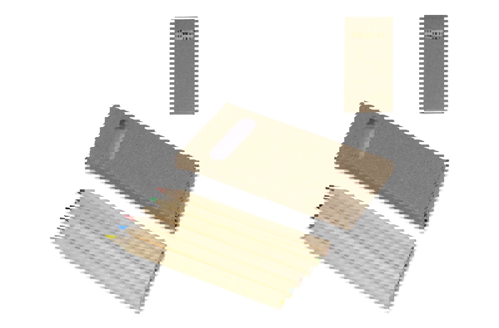 A set of 6 vibrant coloring pencils neatly packaged in a kraft box. Ideal for creative projects at home, school, or on the go, this set is perfect for kids, and kids at heart, who enjoy drawing and coloring. Pair it with eco digital print for a sustainable option that’s both fun and environmentally conscious, making it a thoughtful choice for any artist.