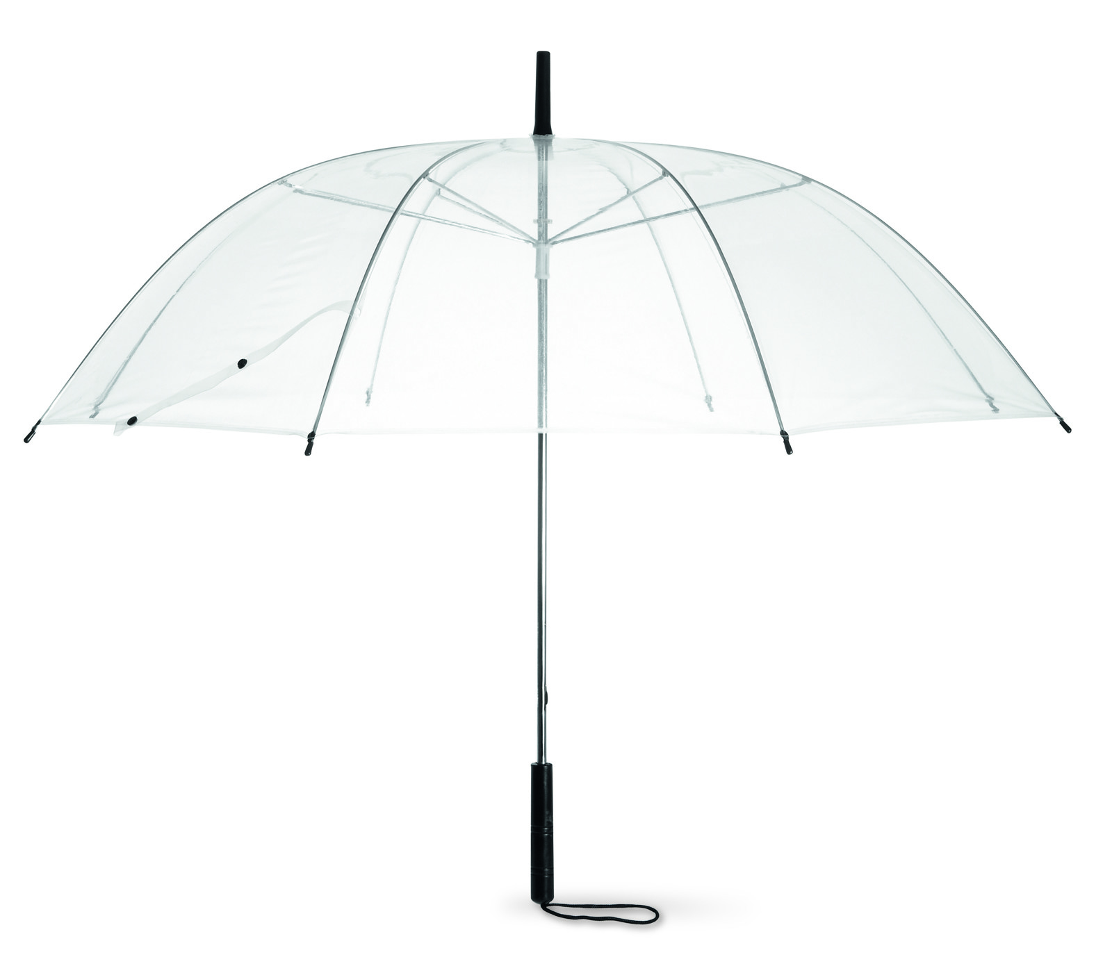 69 cm samodejno odprt dežnik v 190T pongeeju s črno prevlečeno kovinsko gredjo in rebri. Črni plastični nasveti. Raven črn EVA ročaj. Ročno zapiranje.