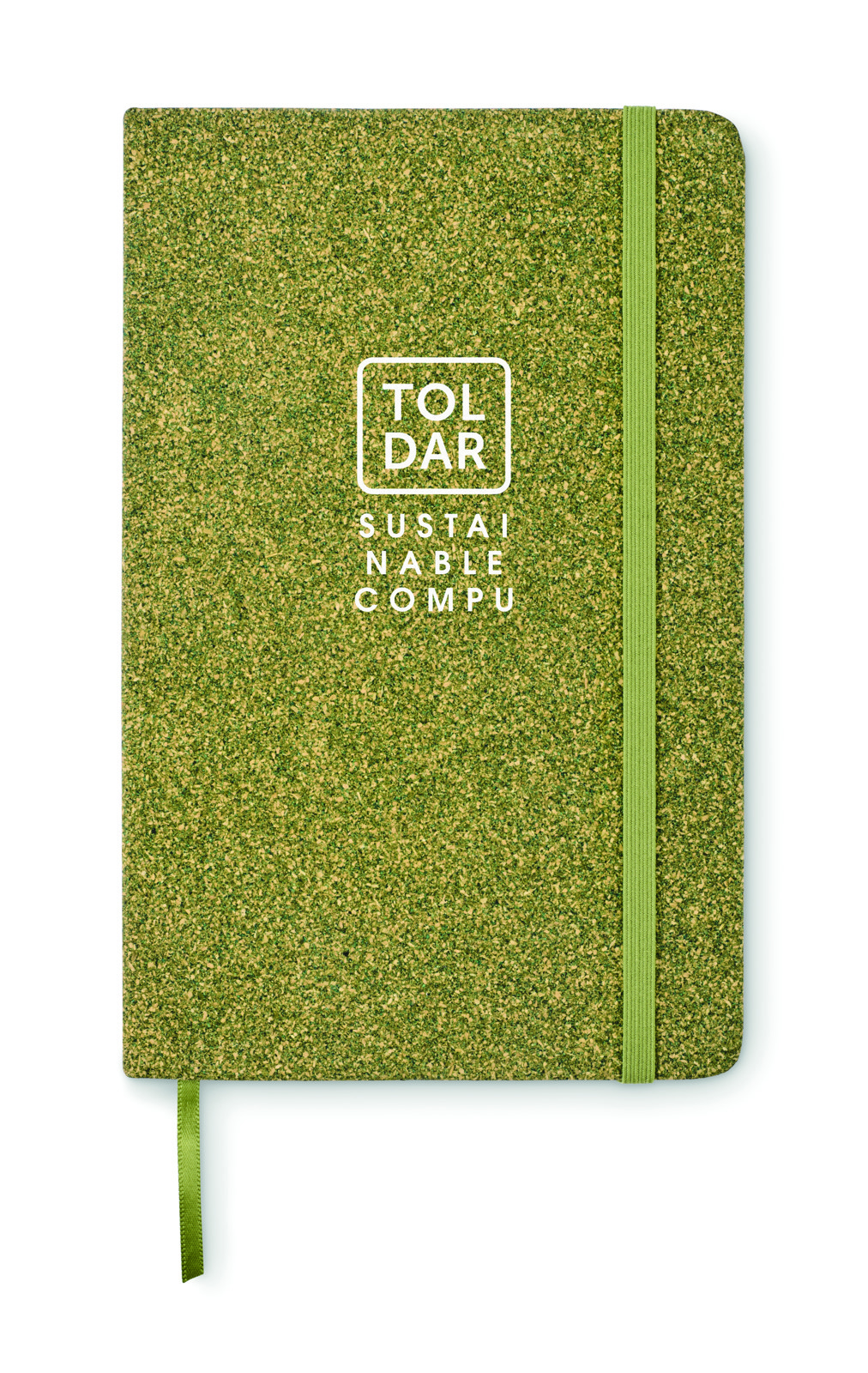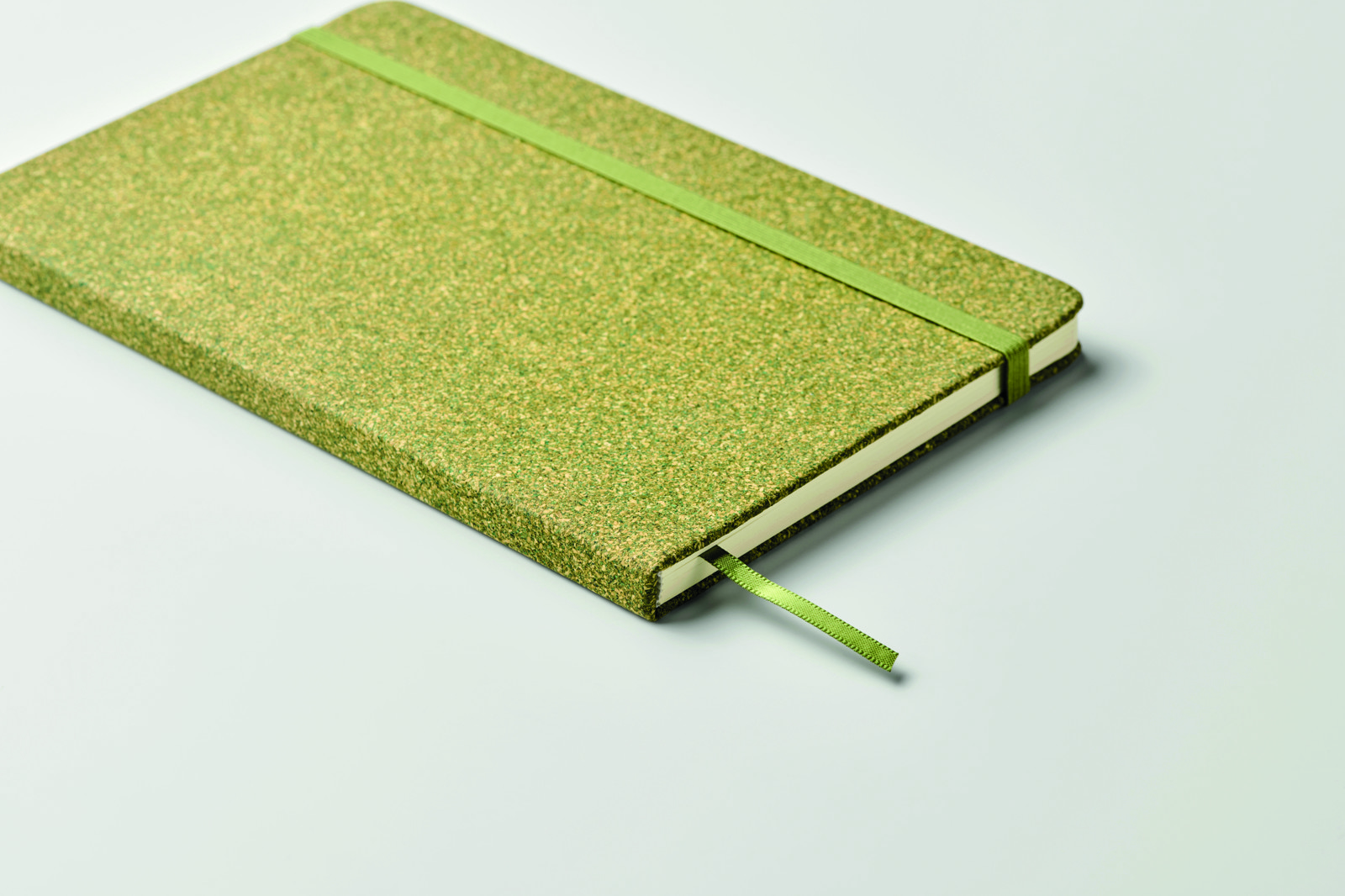 A5 notebook with hard cover made of 20% tea grounds, 30% cork and 50% polycotton cloth. Casebound.160 lined recycled paper pages (80 sheets/70gsm). Matching elastic closure strap and ribbon page-marker. FSC®-certified | FSC MIX CREDIT, N7.1, FSC-C213206