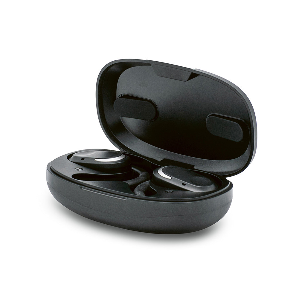 Vsak komplet vključuje dve ušesni čepki, vgrajen mikrofon in 30 mAh baterijo na ušesni čep, kar zagotavlja do 3 ure predvajanja — kot nalašč za poslovne klice ali ljubitelje glasbe na poti. Priložena polnilna baza 185 mAh zagotavlja, da so vaše ušesne slušalke vedno pripravljene za uporabo, medtem ko mikro USB kabel za polnjenje ponuja vsestranske možnosti polnjenja.