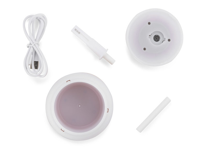 Very easy and convenient to use. In addition to the basic function of generating fog, it has a backlight in seven colors.. A micro USB power cable is included. AERO is not suitable for use with aromatic oils. Technical specifications: - Capacity of the container 160 ml