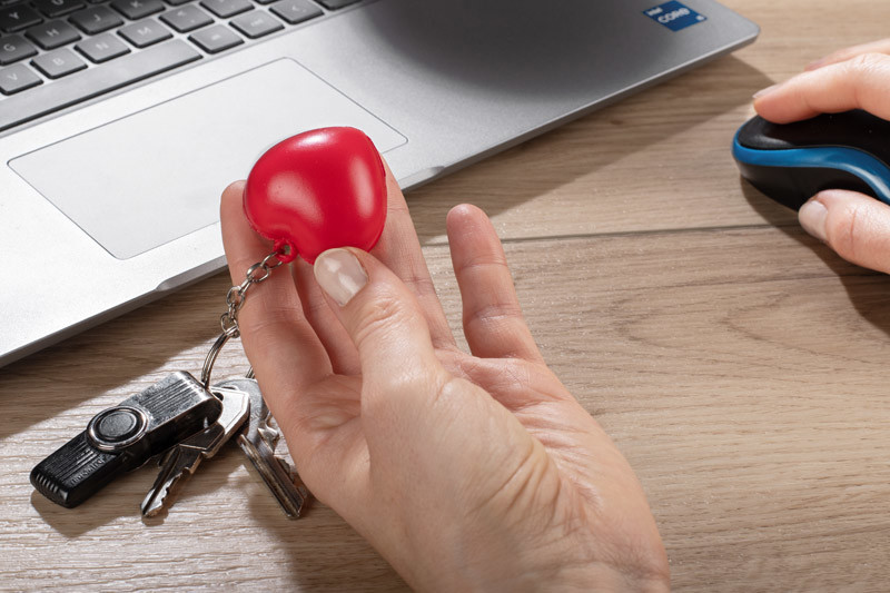 The heart-shaped stress relief keychain is a practical and charming gadget that helps reduce tension in everyday life. Made from soft material, it feels pleasant to touch and is easy to squeeze, promoting relaxation. Perfect as a gift or an accessory for your keys, always ready in stressful moments.