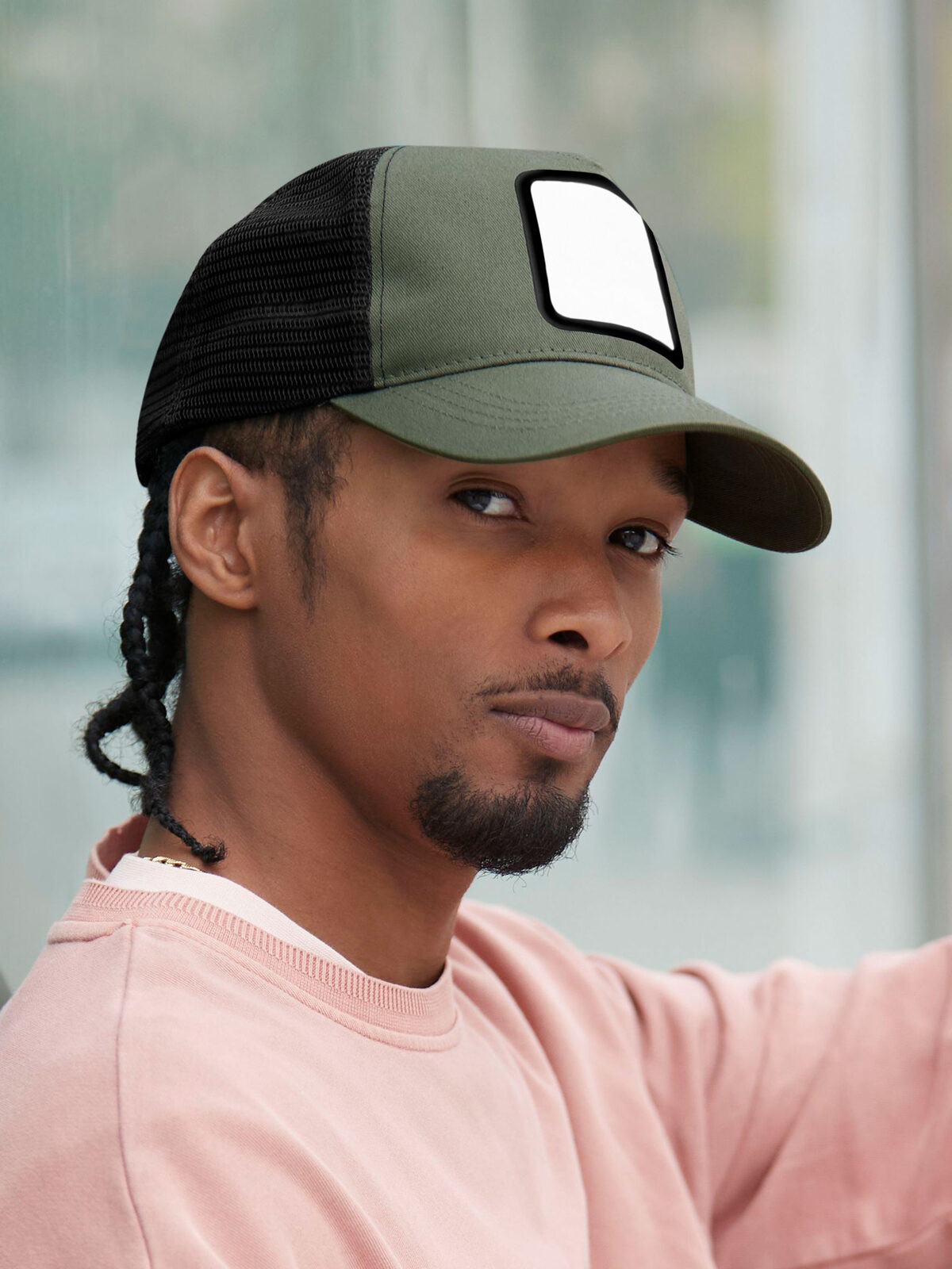 100% cotton, polyester mesh. 5-panel cap, contrast colours styling, adjustable snapback closure, curved visor, cotton twill patch for decoration, one size fits all. Removable label.