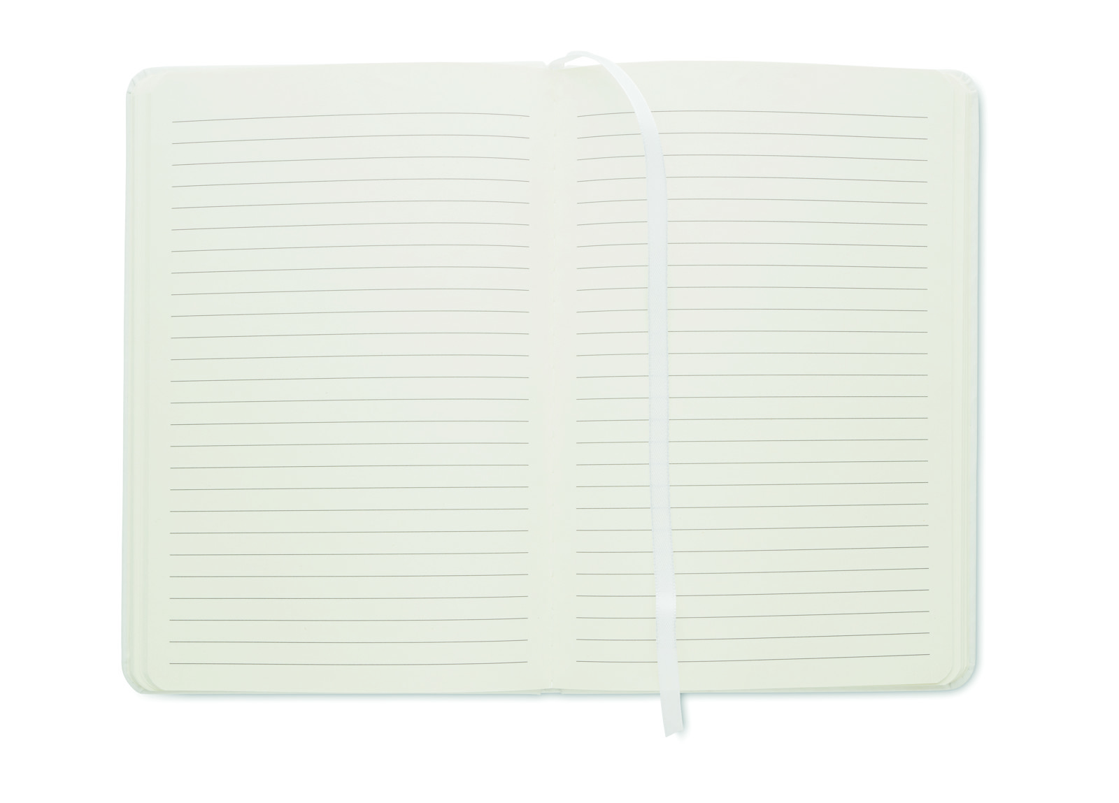 V notranjosti boste našli 192 črtastih strani (96 listov) recikliranega papirja, zaradi česar je okolju prijazno darilo, ki je v skladu z vrednotami trajnosti. Beležnica je vezana v etui za vzdržljivost in vključuje ujemajoč se elastičen trak za zapiranje in trak za označevanje strani, kar omogoča, da vaša blagovna znamka združi funkcijo s prefinjenostjo.