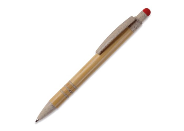 Ball pen bamboo and wheatstraw with stylus - Beige / Red