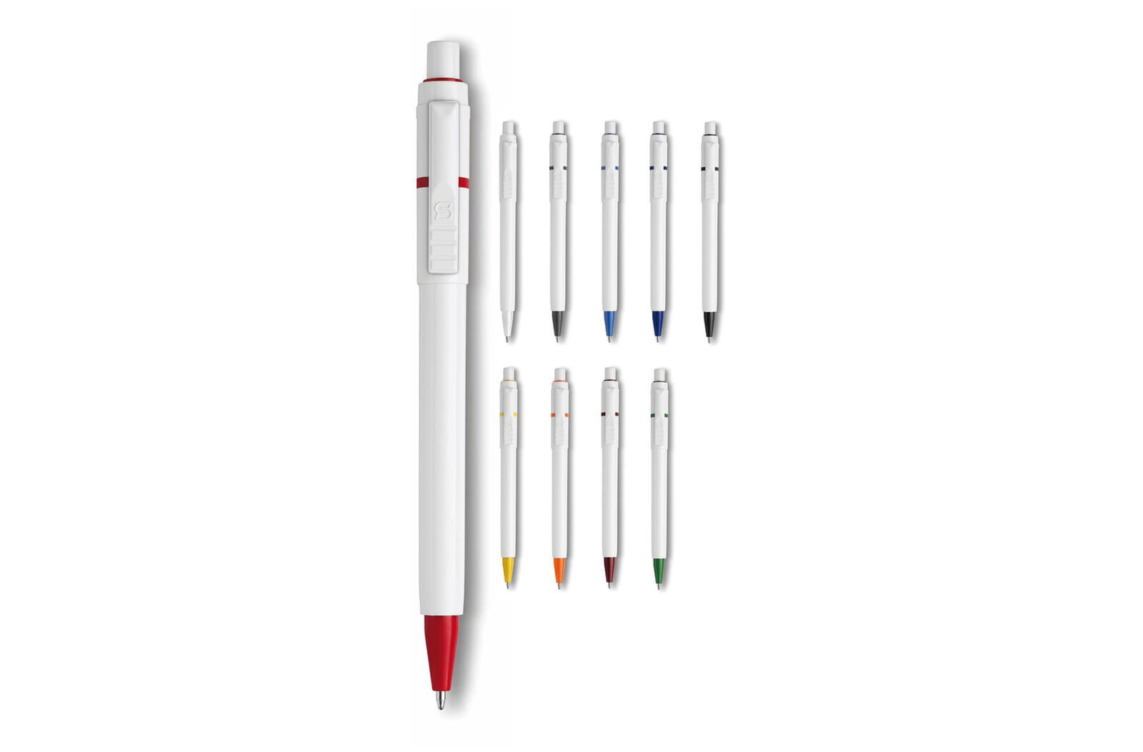 The Baron hardcolour is the same model as the 80900 but with normal plastic X20 refill. The refill includes blue writing ink. The white barrel can easily be customized with an imprint. It includes a pusher mechanism and is made of ABS, made in Europe. From orders of 5.000 pieces, you can choose your own colour combination.