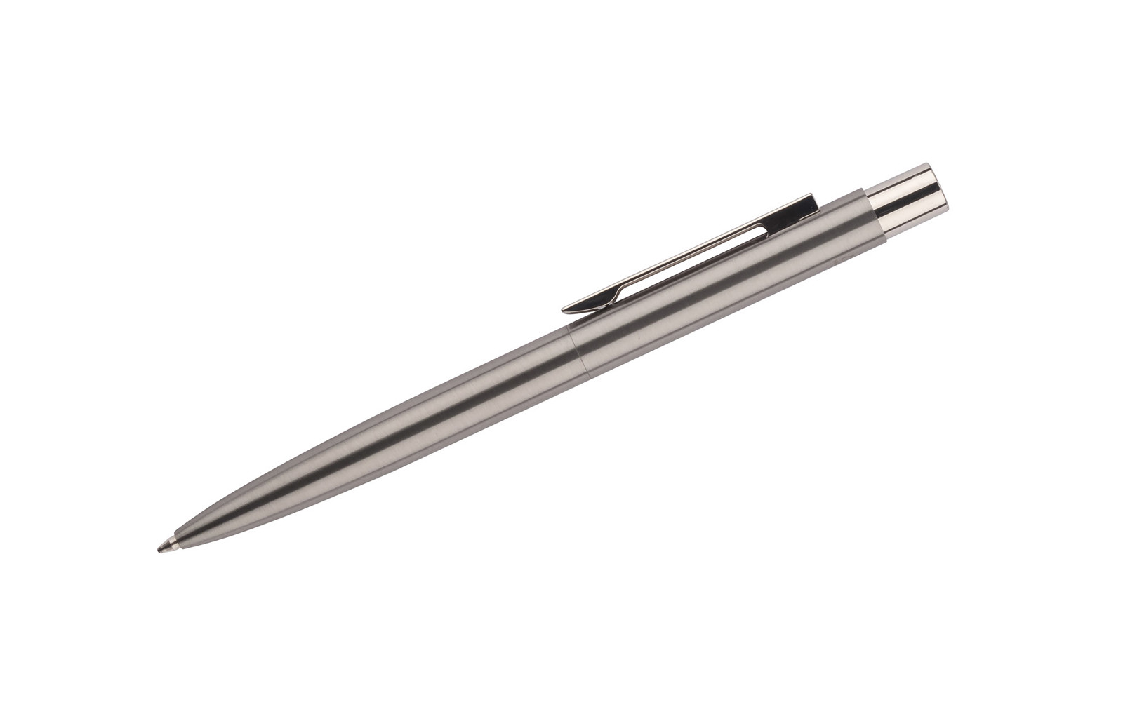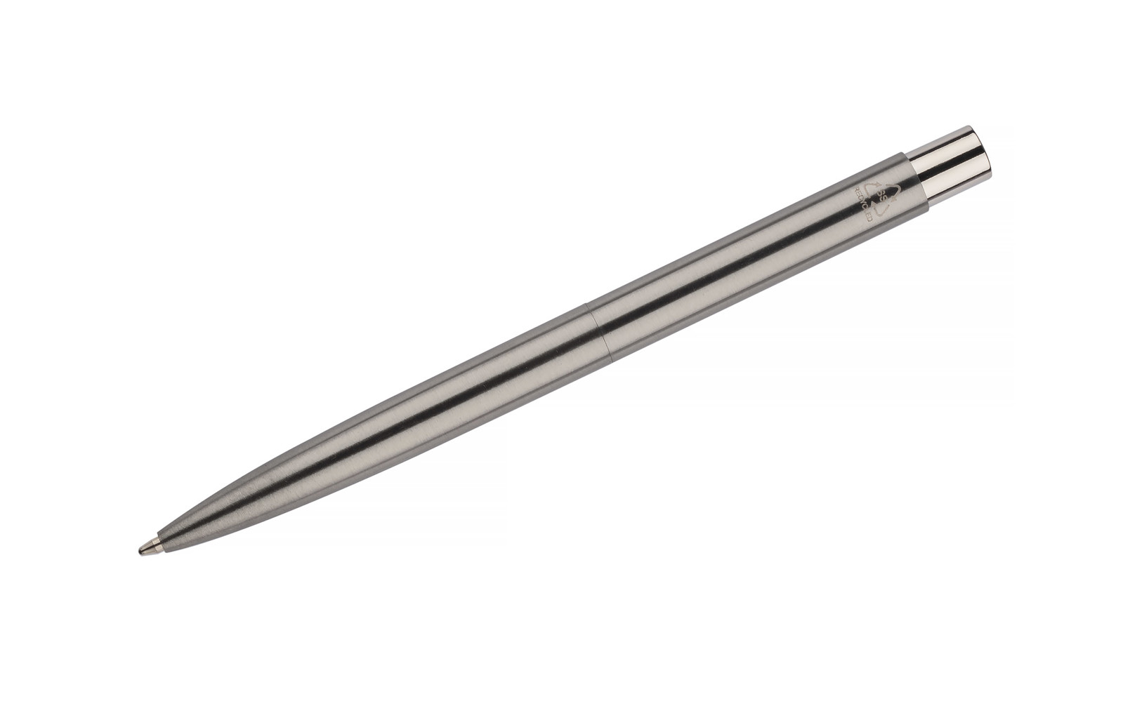 The DELOX ballpoint pen looks extremely elegant. Made of recycled stainless steel. Blue refill.