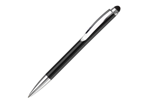 A Toppoint design metal stylus ball pen, provided with a Jumbo refill (standard: blue writing ink). Including twist mechanism, metal clip and tip. Laser engraving possible.