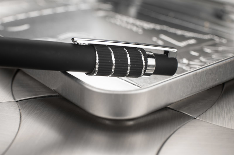SPINO is distinguished by the combination of a classic ballpoint pen with the popular anti-stress spinner, located just below the clip. The casing covered with a soft-touch finish ensures comfortable writing. The spinner with decorative silver elements is not only an eye-catcher, but also helps to relieve tension during work or meetings. It is a functional writing gadget with a fun element, which is perfect as an original advertising medium.