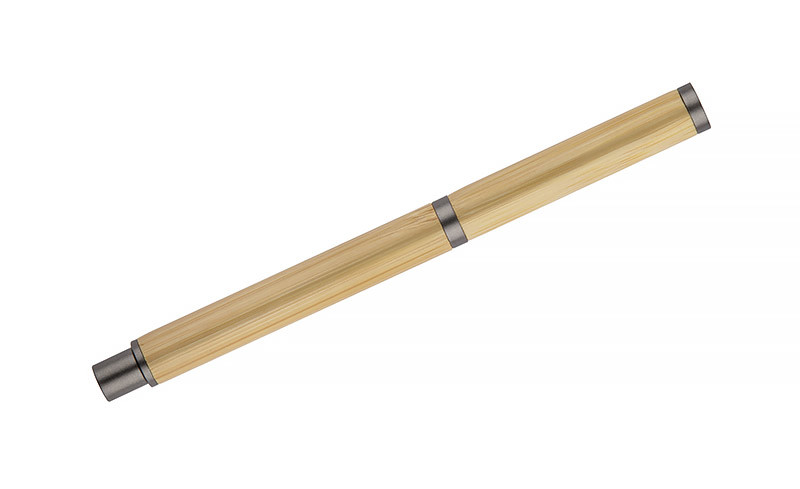 Ta lahek peresnik, izdelan iz obnovljivega bambusa in trpežnega nerjavečega jekla, tehta le 7 gramov, je idealen za vsakodnevno uporabo. Njegovo polnilo s črnim črnilom zagotavlja gladko izkušnjo pisanja, medtem ko njegova okolju prijazna zasnova odraža zavezanost vašega podjetja zelenim vrednotam. Z nizkim odtisom CO2, ki znaša samo 0,04 kg, je to odgovorna izbira, ki ne ogroža stila.