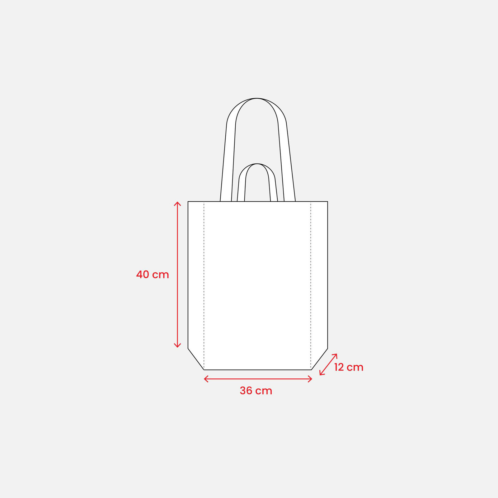 Z veliko velikostjo 420 x 380 mm, dolgimi ročaji za udobno prenašanje in priročnim zapiranjem z vrvico združuje funkcionalnost in okolju prijaznost v enem elegantnem dizajnu. Kljub svoji lahki konstrukciji — le 81 g — nudi solidno vzdržljivost s kakovostjo pribl. 140 gr/m². Upoštevajte, da se lahko po tiskanju rahlo skrči.