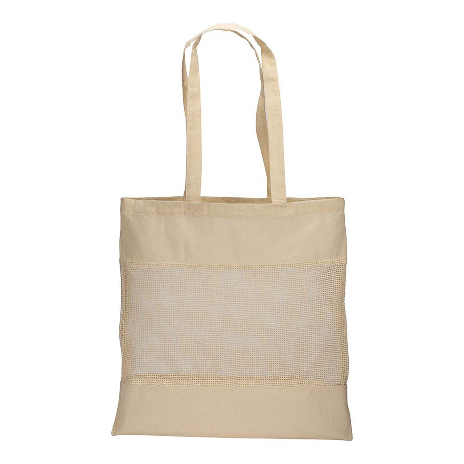 Bombažna nakupovalna torba 135 g/m2, mrežasta sredina, 42x42 cm
