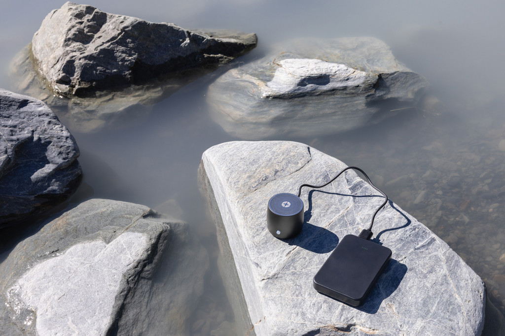 Izdelan je iz reciklirane plastike ABS s certifikatom RCS, pri čemer je 25 % predmeta narejenega iz recikliranih materialov (glede na težo), je elegantna rešitev za strokovnjaki na poti. Z vhodno/izhodnimi vrati USB-A in USB-C zagotavlja hitro in prilagodljivo združljivost naprav. Indikatorji napajanja priročno prikazujejo preostalo raven baterije, tako da uporabniki nikoli niso nepripravljeni.