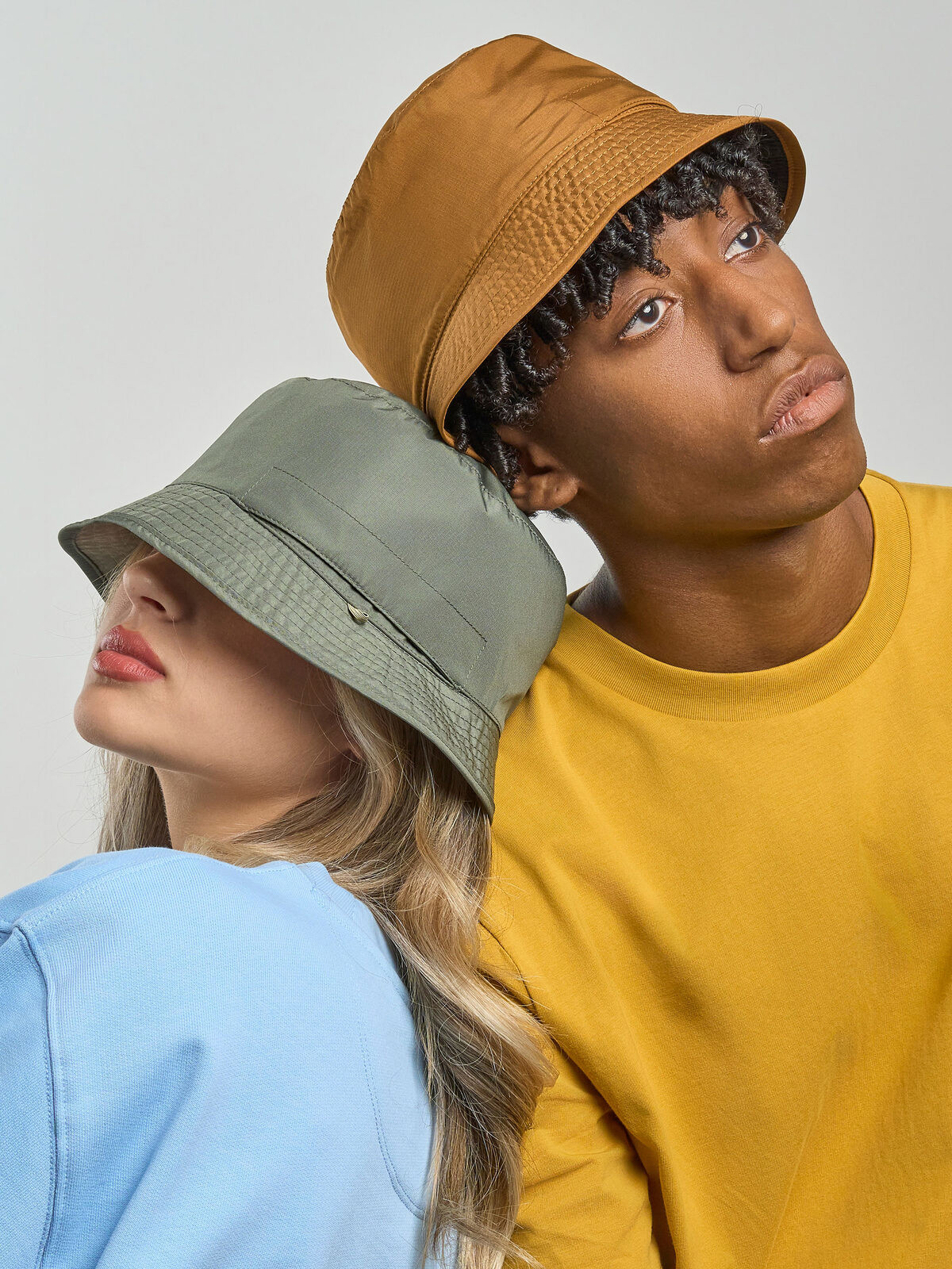 100% recycled polyester ripstop. Outdoor reversible bucket hat in recycled polyester ripstop, soft crown thatcan be easily folded inside its pocket, eco-friendly water resistant treatment. Removable label.