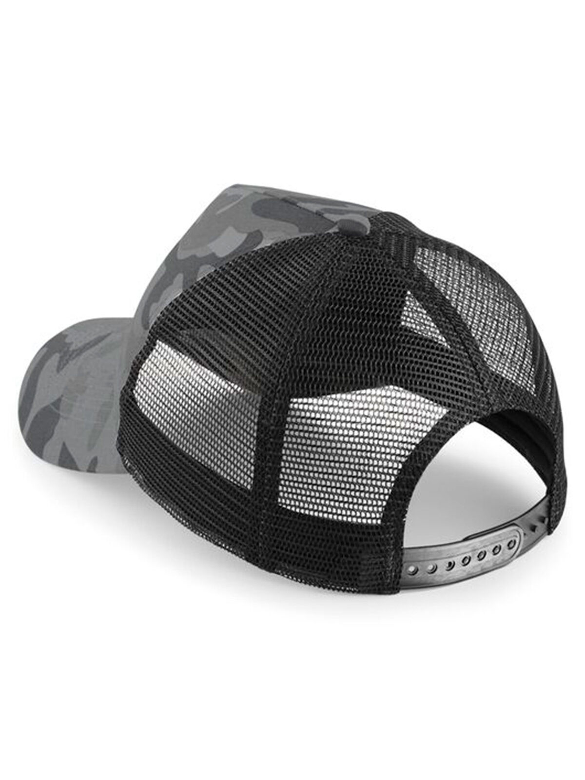 100% Cotton front panel & peak, 100% Polyester mesh rear panels. 5 panel design cap, pre-curved peak, camouflage detailing, retro style snapback size adjuster, one size fits all.