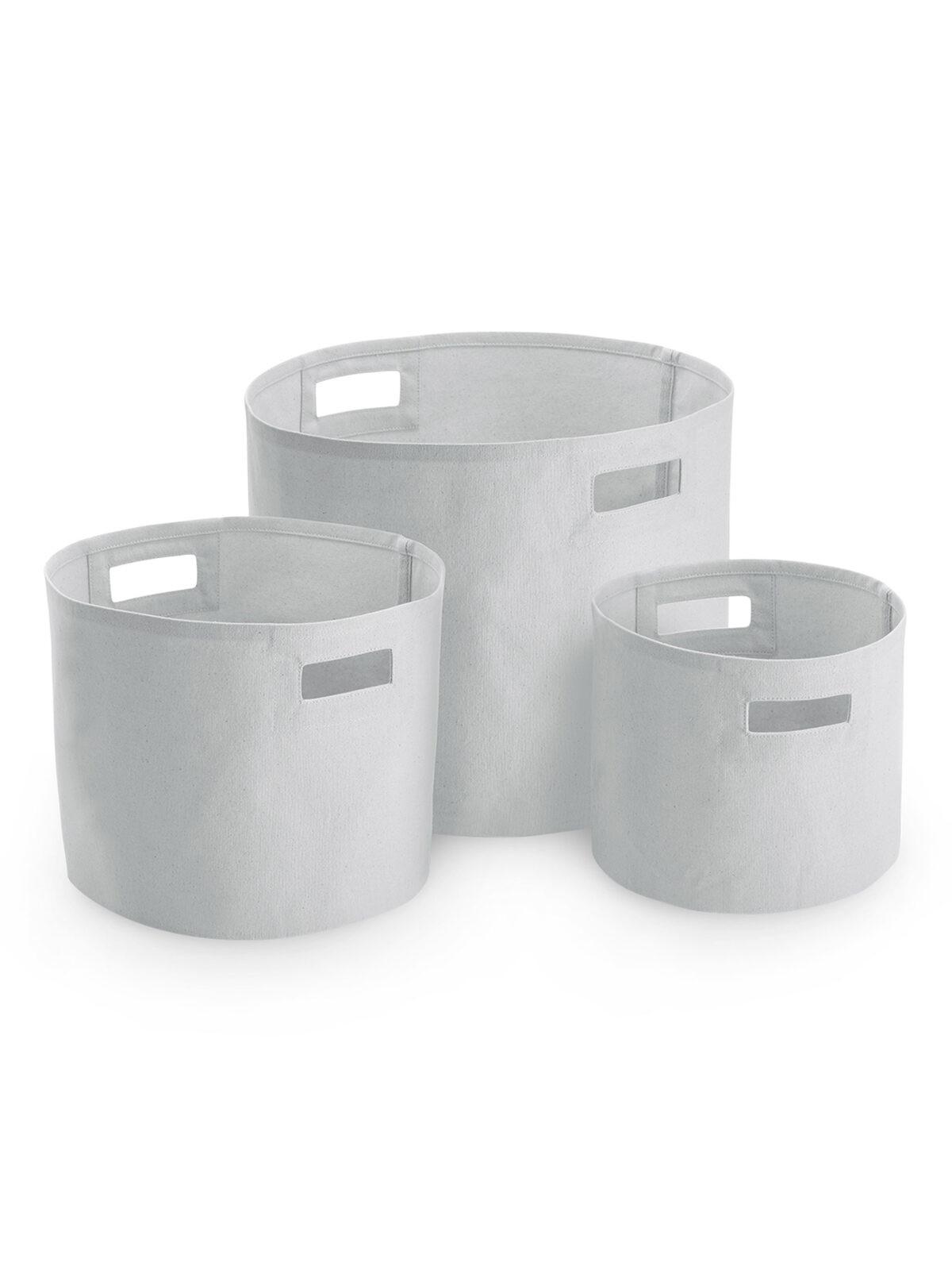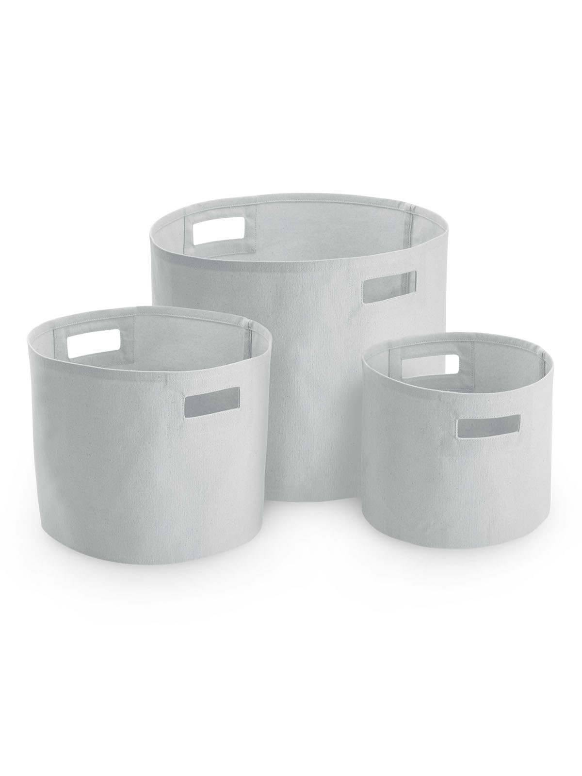 100% cotton canvas. Multi-purpose tub in premium heavyweight fabric, reinforced built-in handles. Removable label. Dimensions: S: 23x20cm, cap. 6lt. - M: 28x24cm, cap. 13lt. - L: 38x30cm, cap. 28lt.