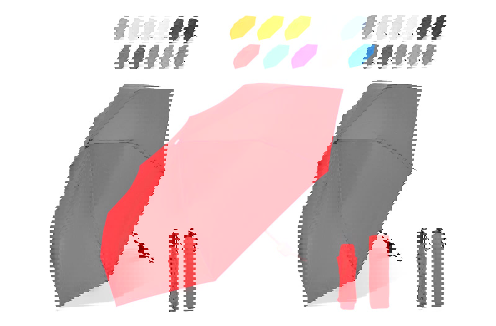 69 cm samodejno odprt dežnik v 190T pongeeju s črno prevlečeno kovinsko gredjo in rebri. Črni plastični nasveti. Raven črn EVA ročaj. Ročno zapiranje.