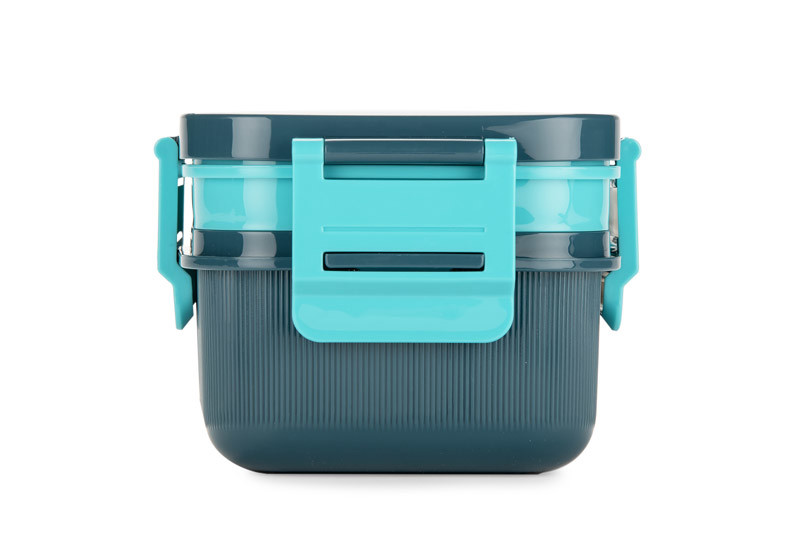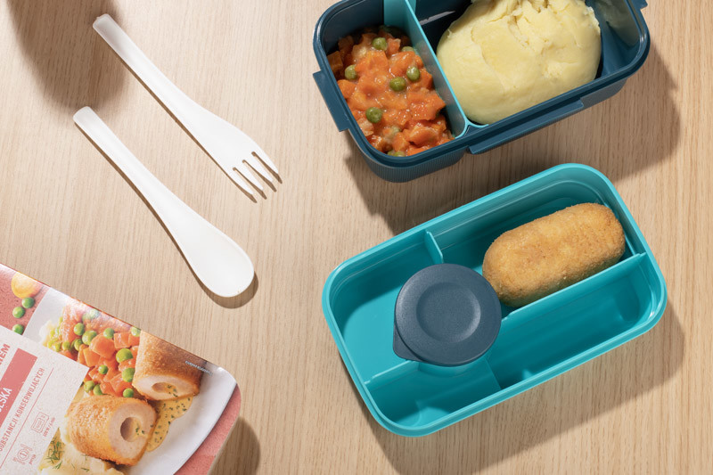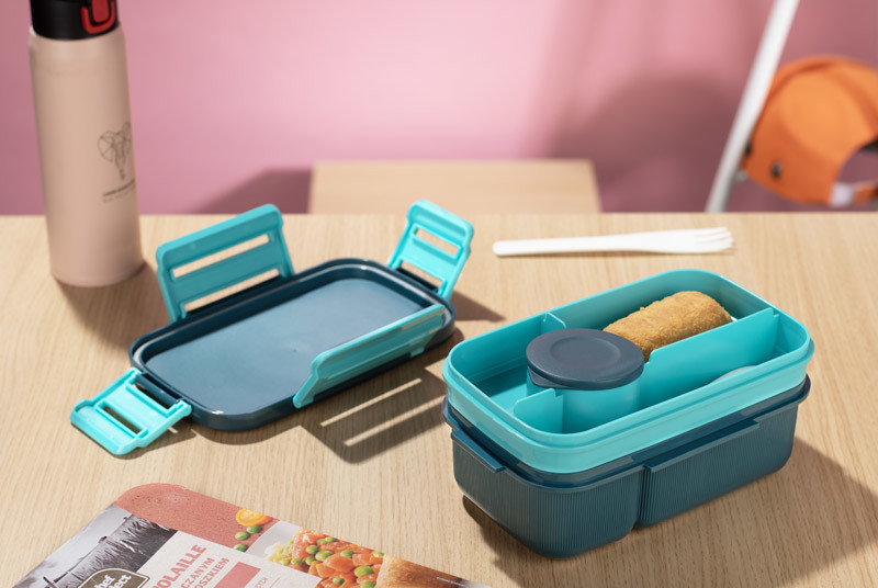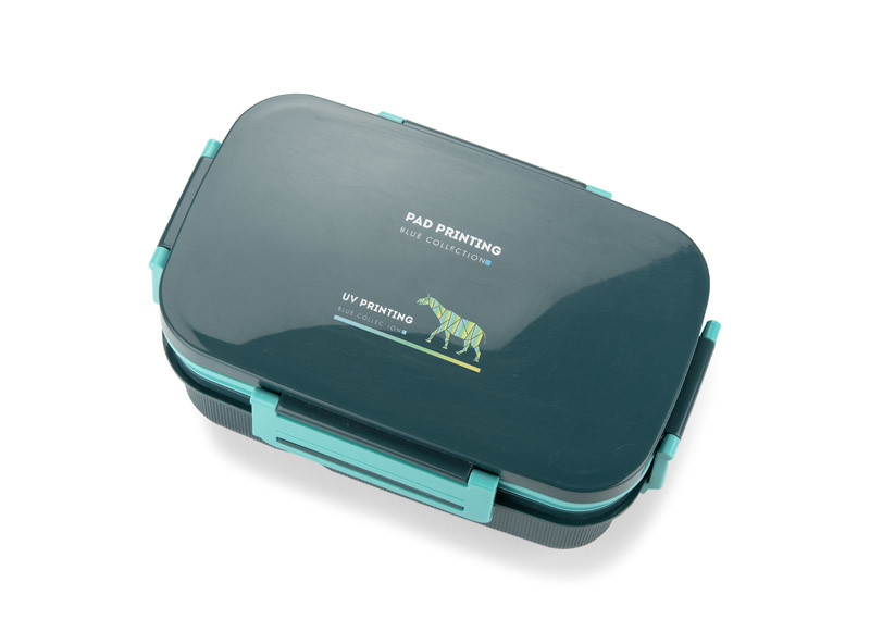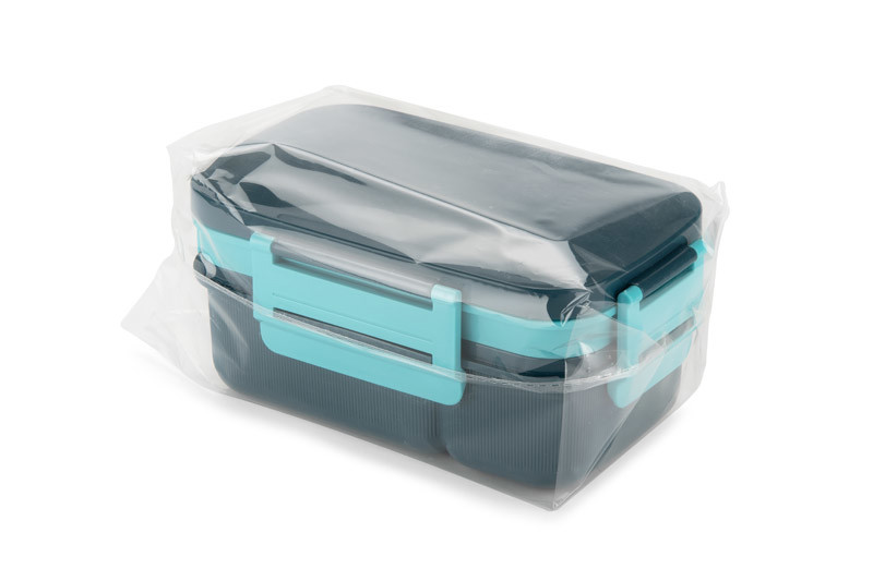 The BILO container is a practical lunchbox with a clever design for convenient storage of meals. The main container is divided into two compartments and an additional insert contains space for cutlery, a small sauce container and two smaller compartments. This prevents different ingredients from mixing together. The main container is divided into two compartments and the additional insert contains a space for cutlery, a small sauce container and two smaller compartments. The lid has a gasket and four locking clips to ensure a tight seal and safe storage of food.Made of durable plastic, it will perform well in everyday use. The possibility of branding makes it a functional advertising gadget.