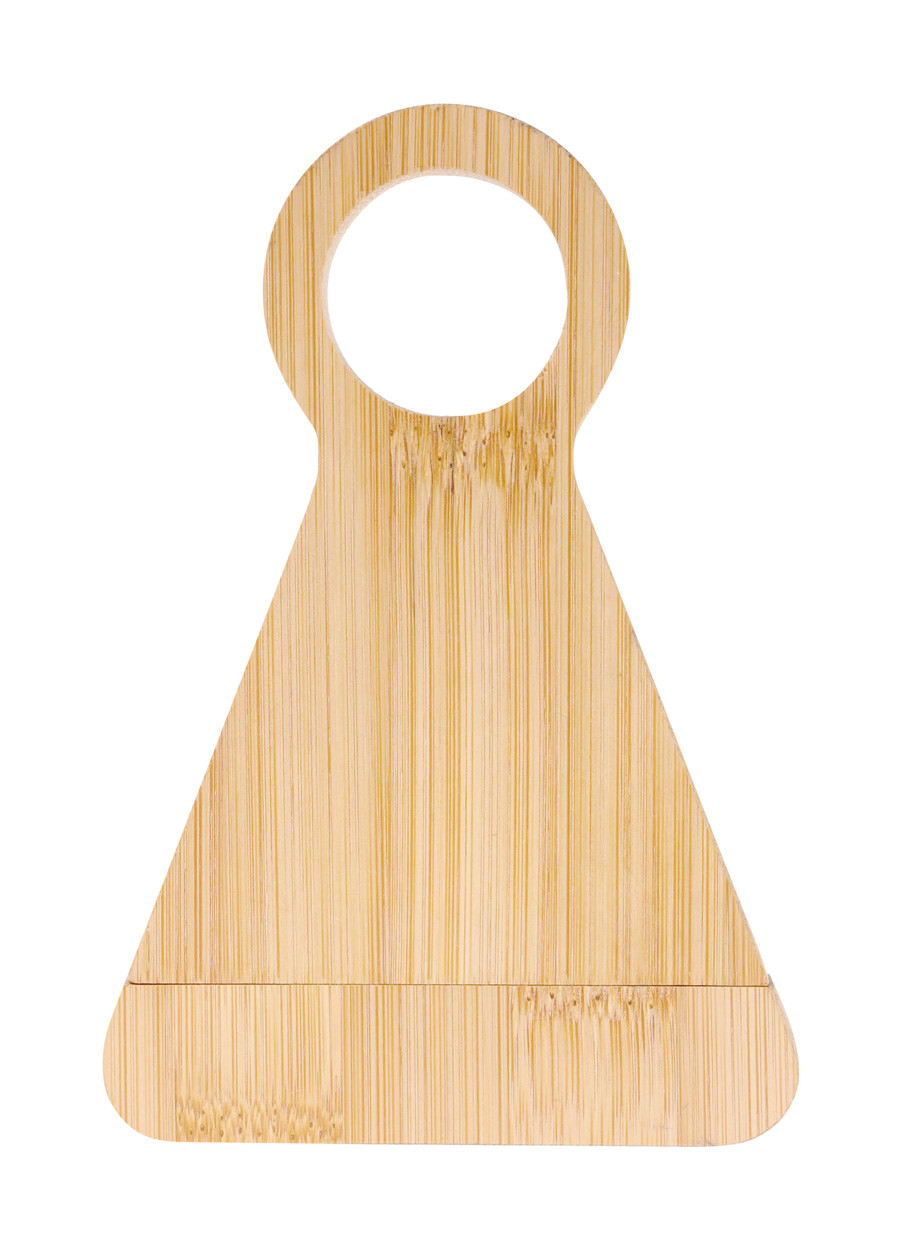 Bamboo bottle holder with stainless steel corkscrew.