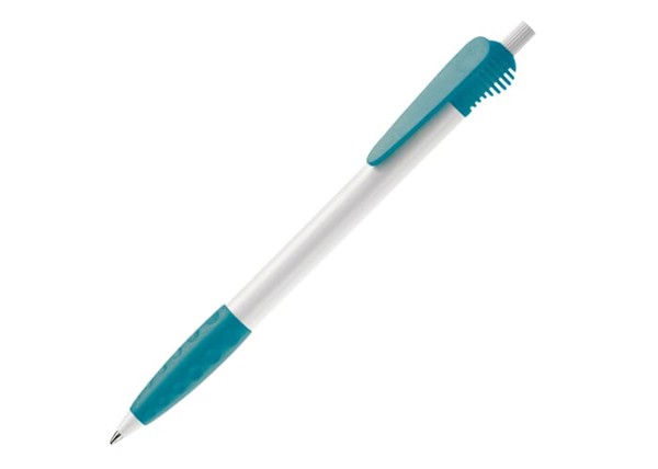 Cosmo ball pen HC rubber round clip - White / Turquoise
