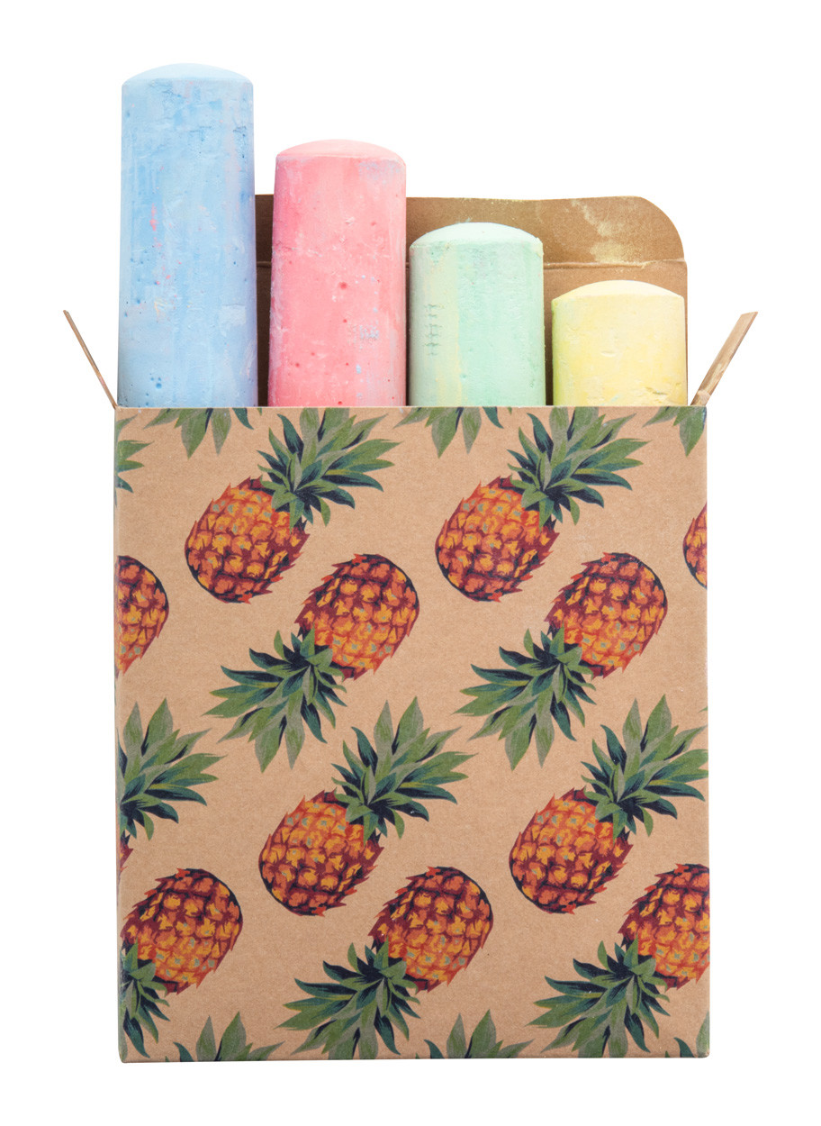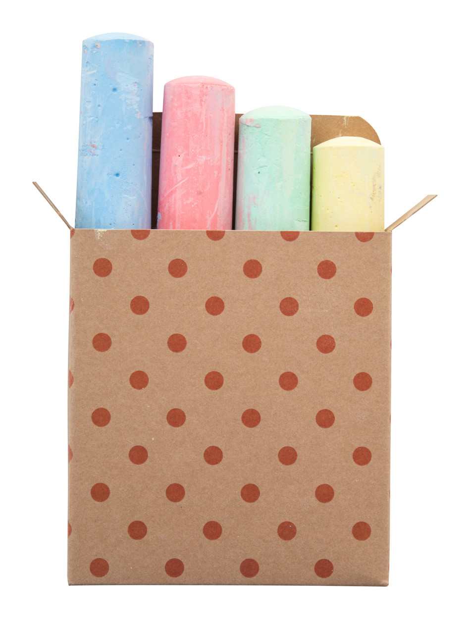 4 pc coloured chalk set in full colour printed kraft paper box. Price includes digital printing. MOQ: 100 pcs.