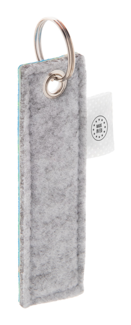 Custom made, RPET felt keyring with full colour printed front side. With distinctive RPET label. Price includes sublimation printing. MOQ: 100 pcs.