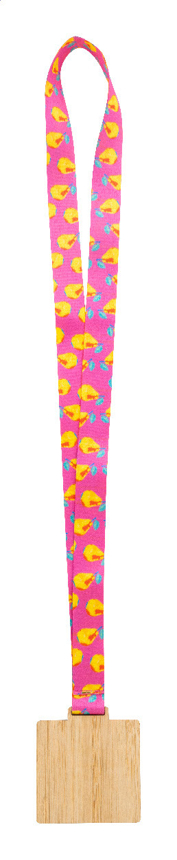 Custom made, square shaped bamboo medal on sublimation printed RPET lanyard. Price includes sublimation printing. MOQ: 100 pcs.