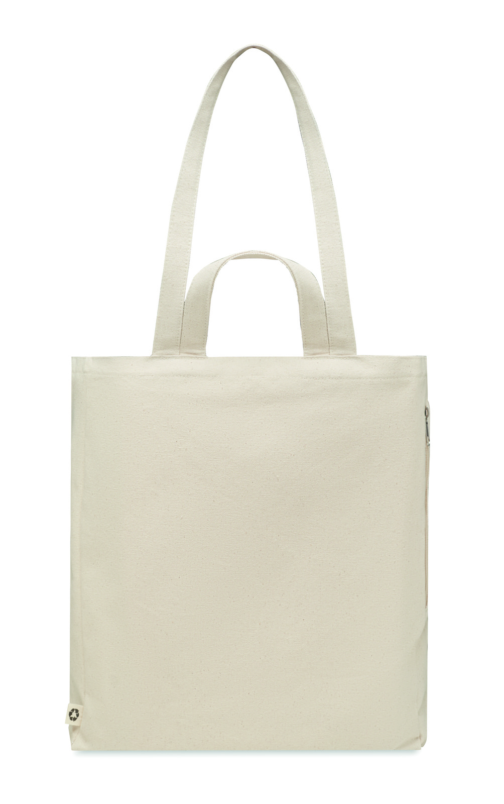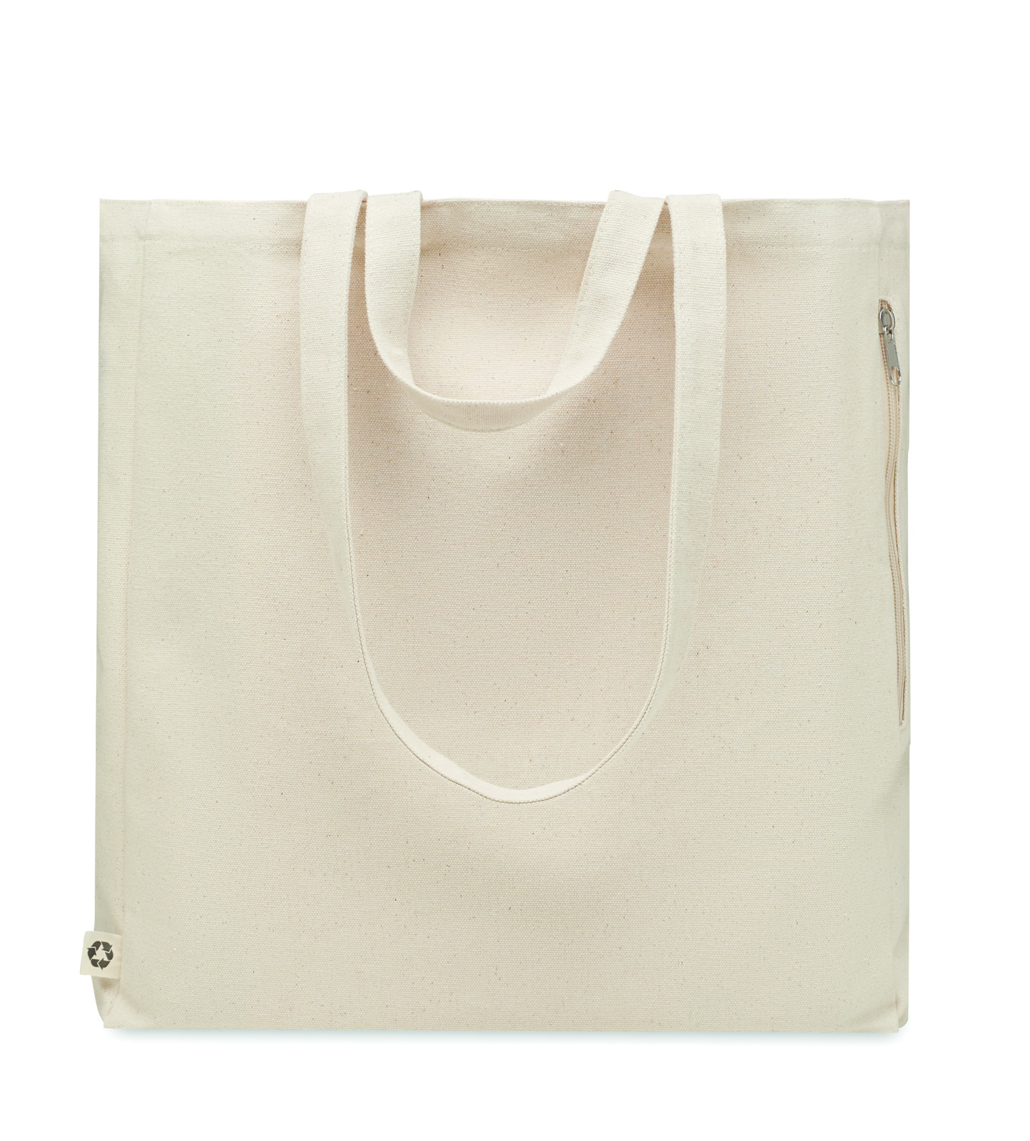 Trajnostno promovirajte svojo blagovno znamko z nakupovalno vrečko Gave iz recikliranega bombaža – elegantno in okolju prijazno izbiro za korporativna darila. Ta torba, izdelana iz vrhunske mešanice 70 % recikliranega bombaža in 30 % recikliranega poliestra, nudi funkcionalnost in odgovornost do okolja. Njegov odporen 380 g/m² material zagotavlja dolgotrajno uporabo, zaradi česar je idealen za vsakodnevno nakupovanje ali izlete na plažo.