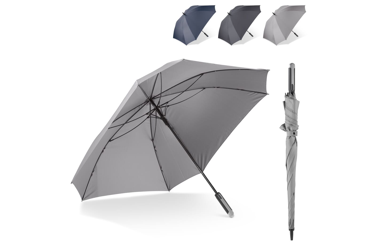 Ta dežnik združuje funkcionalnost in promocijski učinek v enem prefinjenem paketu, naj bo to elegantno darilo za stranko ali praktičen pripomoček za ekipo.