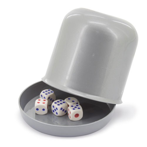 Have fun with your family and friend with this dice set. You can play poker and a lot of other games. It includes a plastic dice cup, a tray, and 5 dice