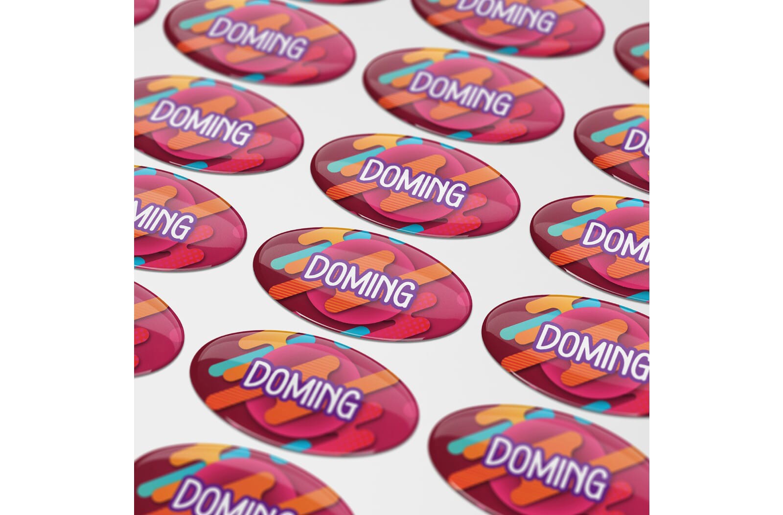 Doming stickers are a versatile branding tool, offering durability and eye-catching 3D effects. Ideal for any logo, they enhance product visibility on various surfaces, from electronics to promotional items, leaving a lasting impression on customers. The stickers are produced with a mercury-free resin which makes it a environmental friendly branding technology.