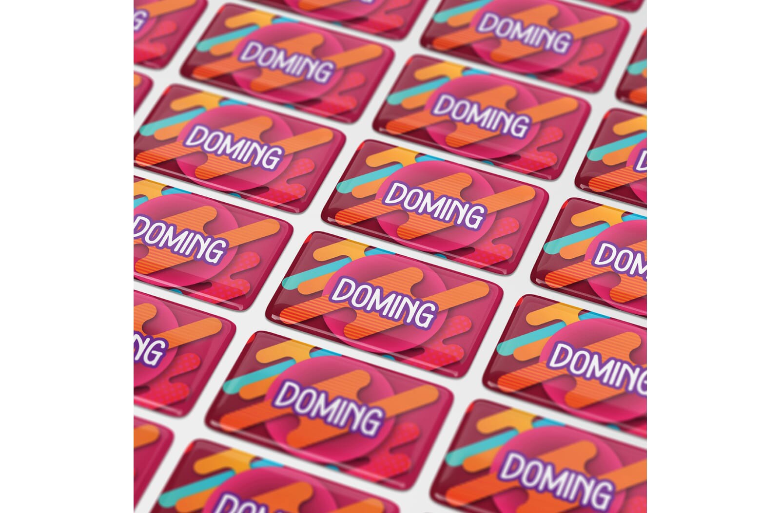 Doming stickers are a versatile branding tool, offering durability and eye-catching 3D effects. Ideal for any logo, they enhance product visibility on various surfaces, from electronics to promotional items, leaving a lasting impression on customers. The stickers are produced with a mercury-free resin which makes it a environmental friendly branding technology.