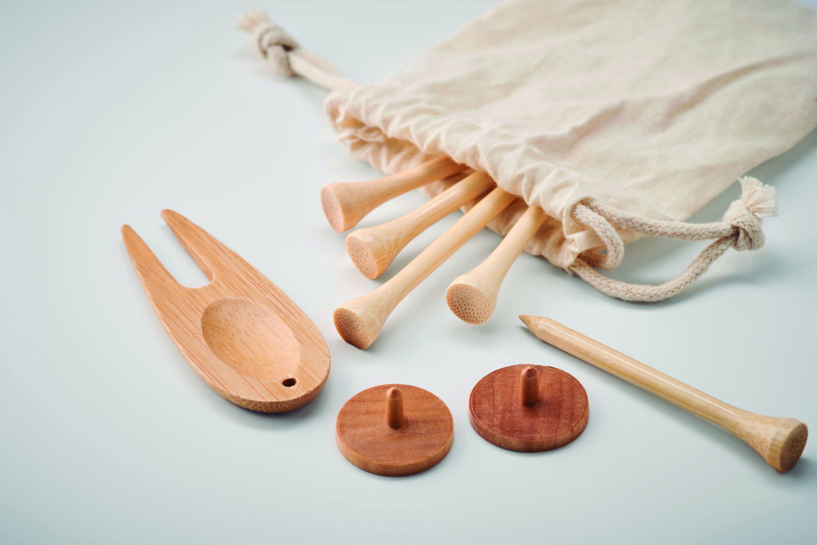 Dormie set za golf, bambus, torbica iz organskega bombaža