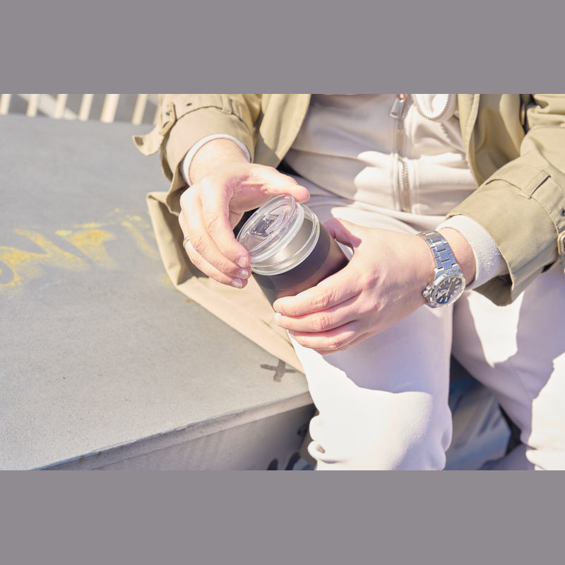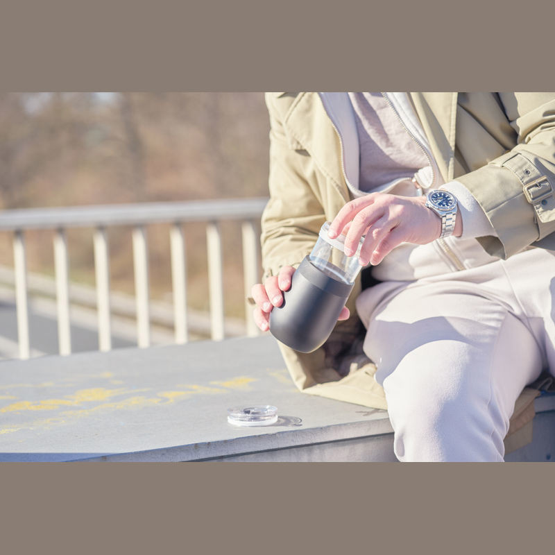The ideal solution for sophisticated beverage enjoyment. The removable glass insert is suitable for all types of drinks, ensuring a pure tasting experience with a capacity of 350 ml. Crafted from premium materials such as borosilicate glass and recycled stainless steel, this double-walled cup maintains the temperature of its contents for up to 12 hours, whether hot or cold. Presented in exlusive gift packaging with 2-year warranty.