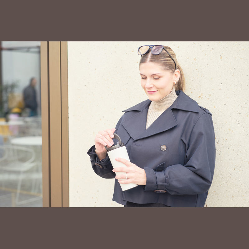Ta 300 ml potovalni spremljevalec ima neprepusten pokrov s ključavnico za varen transport in ga je mogoče ročno prati za dolgotrajno uporabo. Njegov vzdržljiv premaz s praškastim premazom je odporen na bledenje in razpoke ter ohranja eleganten videz tudi pri vsakodnevni uporabi. Lahka s samo 255 g in velikosti za prenosljivost (192 mm visoka s premerom 63 mm) se zlahka prilega v torbe ali držala za skodelice.