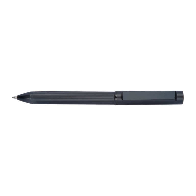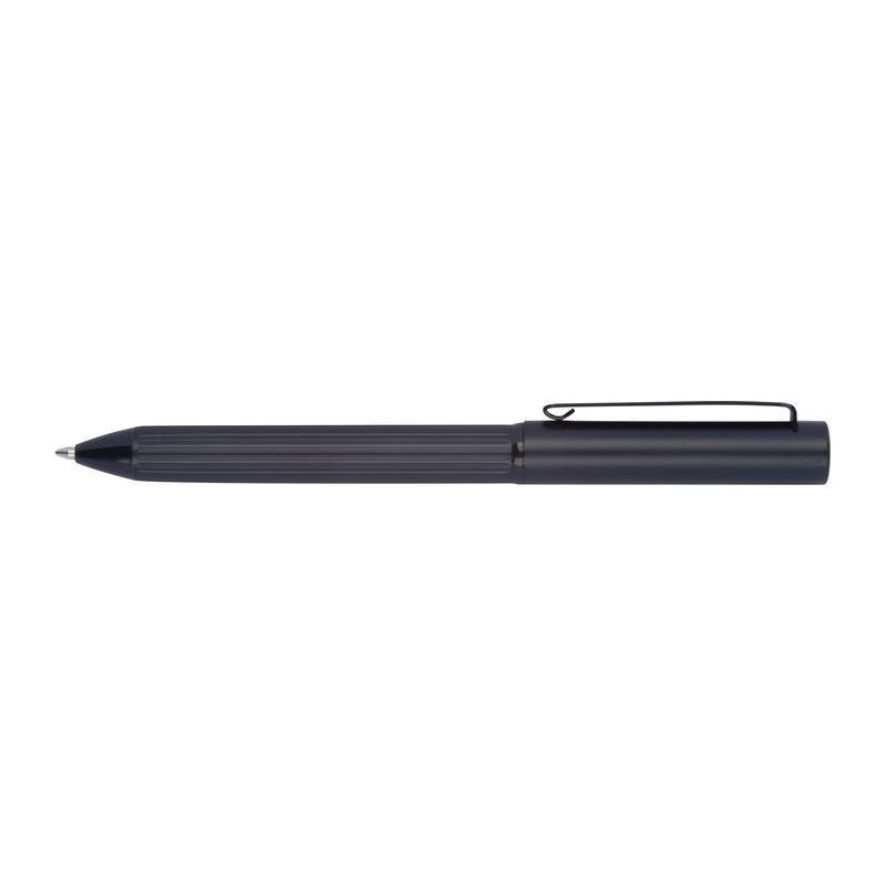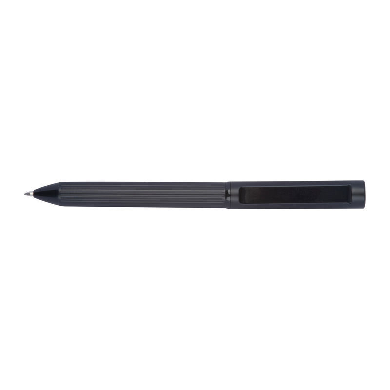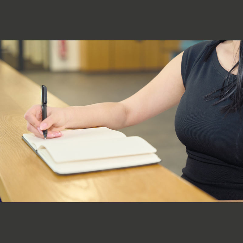 Njegova mehka papirnata platnica zagotavlja profesionalen videz in je opremljena z namenskim držalom za pisalo, ki varno pritrdi ustrezni kemični svinčnik, ki je izdelan iz recikliranega kartona in biorazgradljiva plastika. Pero je opremljeno z mehanizmom na gumb za gladko pisanje z modrim črnilom, zaradi česar je eleganten in odgovoren.