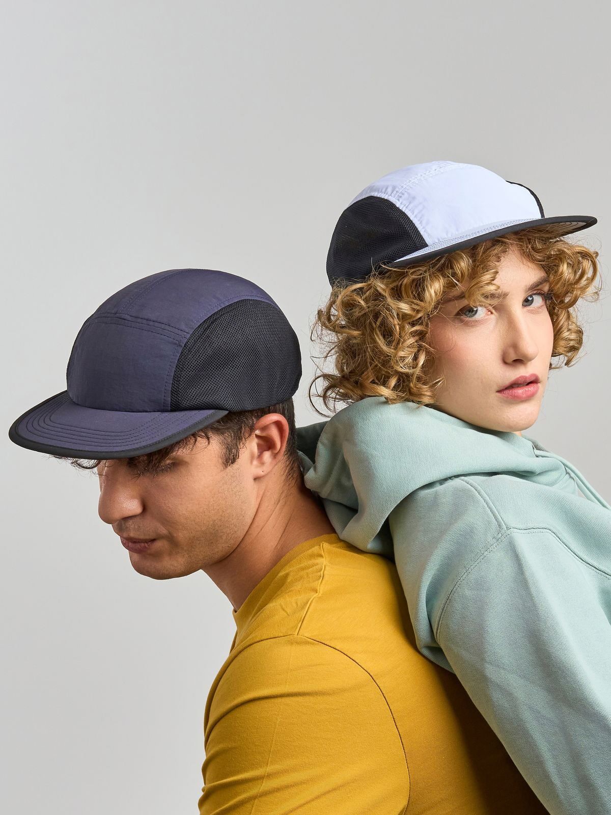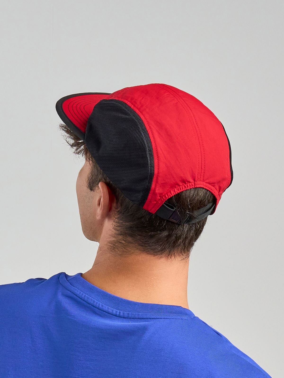 100% Main fabric: recycled nylon, Side&back: 100% recycled polyester. 5-panel, waterproof, ideal for sports hat with dry-tech sweatband, flat, foldable visor, ribbon with plastic closure, mesh side and back.