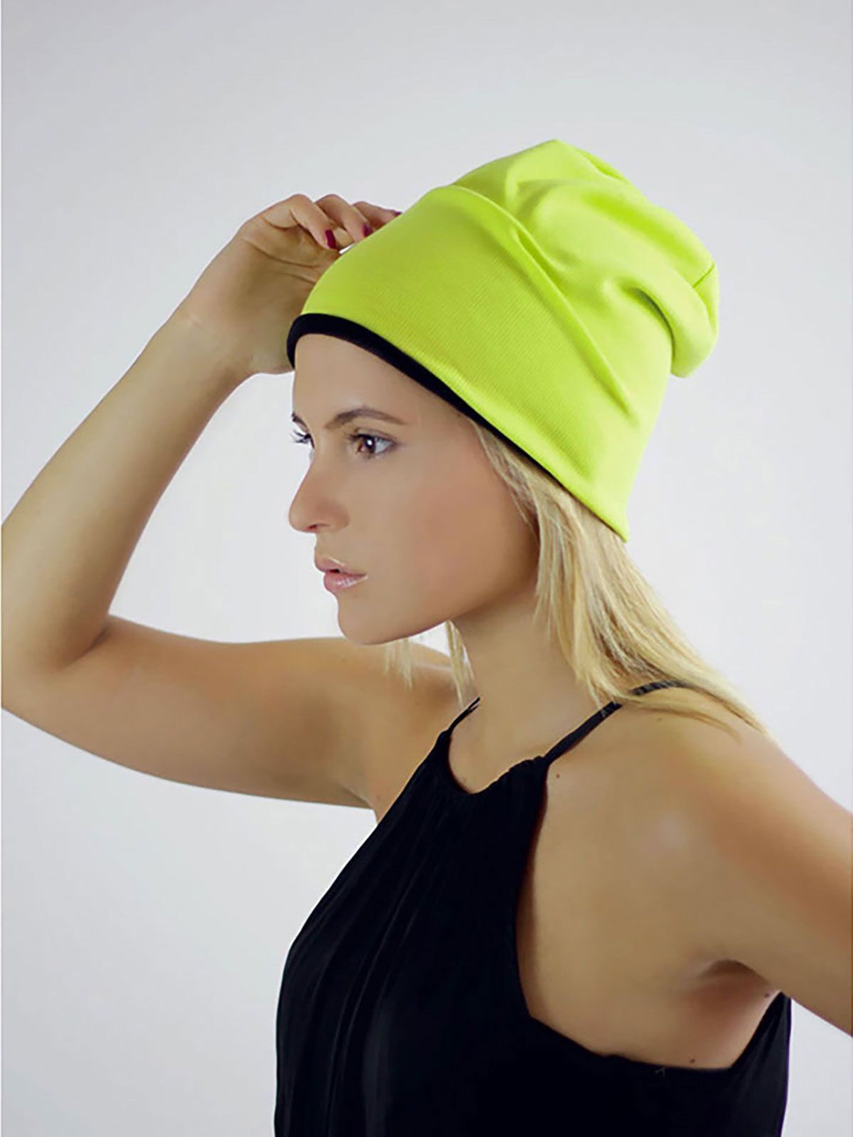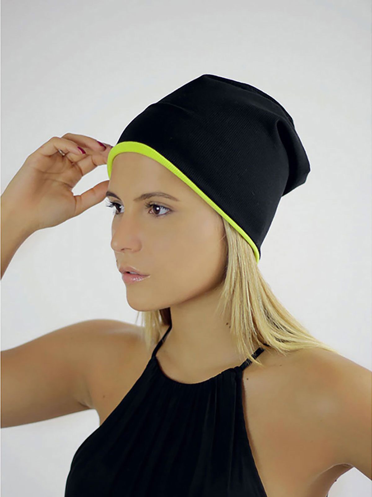 73% polyester, 23% cotton, 4% elastane. Beanie, reversible, atlantis label easily removable, double layer, 6 stitchings, weight: approx. 68g.