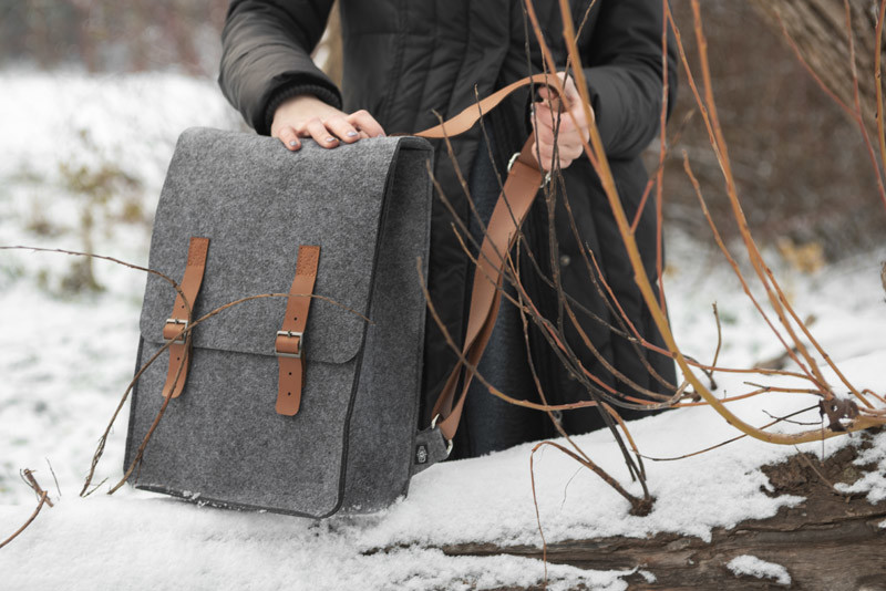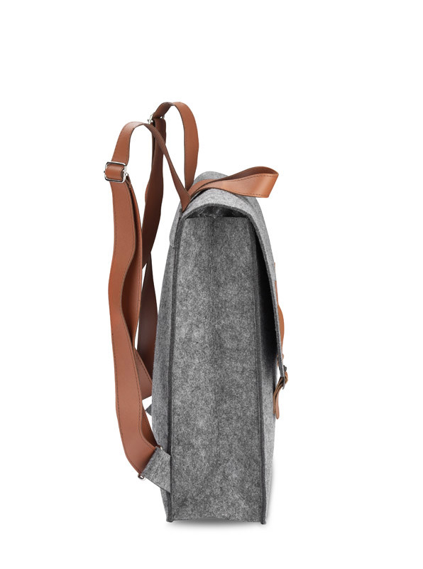 The FELT2GO backpack is distinguished by its unique design and modern form. Its timeless rectangular shape of felt pocket, enriched with contrasting details of leather-like material (PU), gives it a designer and original character. This unique backpack was created with aesthetics and functionality in mind. Made from recycled rPET felt with leather-like material details.