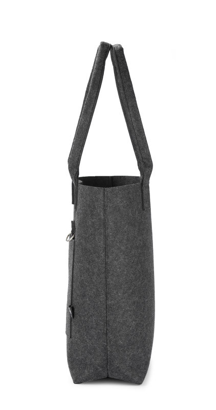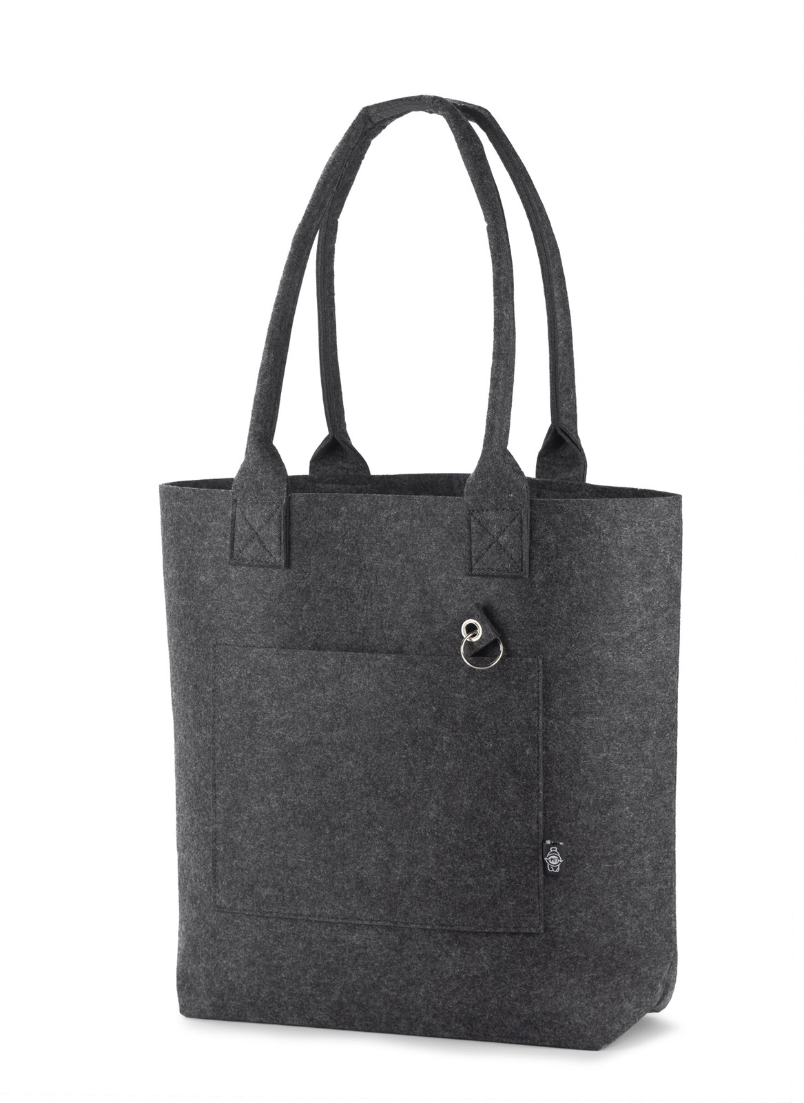 The MARRTO felt bag is functional, lightweight and practical. It can be used as an everyday bag or as a shopping bag. It has comfortable, long handles and a widened bottom, an additional pocket, which makes it very packable. The included felt key ring complements the product nicely. Made from recycled rPET felt.