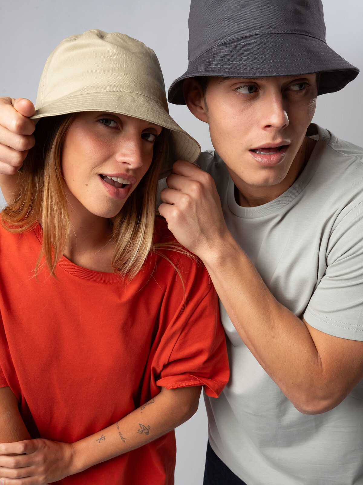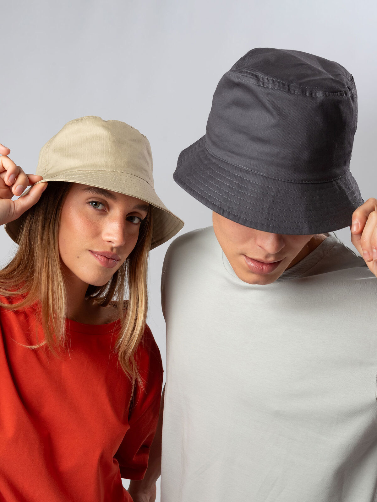 100% cotton twill. Fisherman's hat made of soft fabric for a casual and comfortable look. Without eyelets for an essential design, it is equipped with a 100% cotton sweatband that guarantees freshness and comfort all day long. 8 striped seams on the brim for a touch of style and sturdiness. Available in one size. Tear-off label.