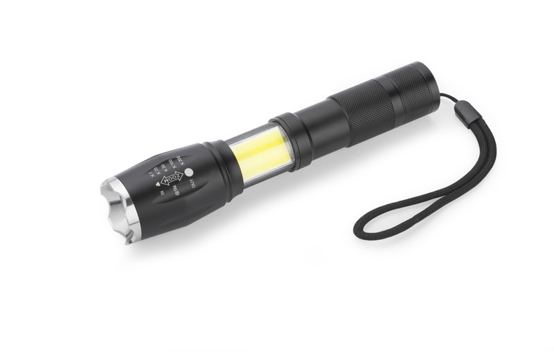 TORCO is a comfortable and robust flash light with six light modes: strong, medium, weak, flashing, SOS, side COB. Made of metal. Equipped with the side COB diodes and main light beam adjustment, it will be suitable even for the most demanding users.