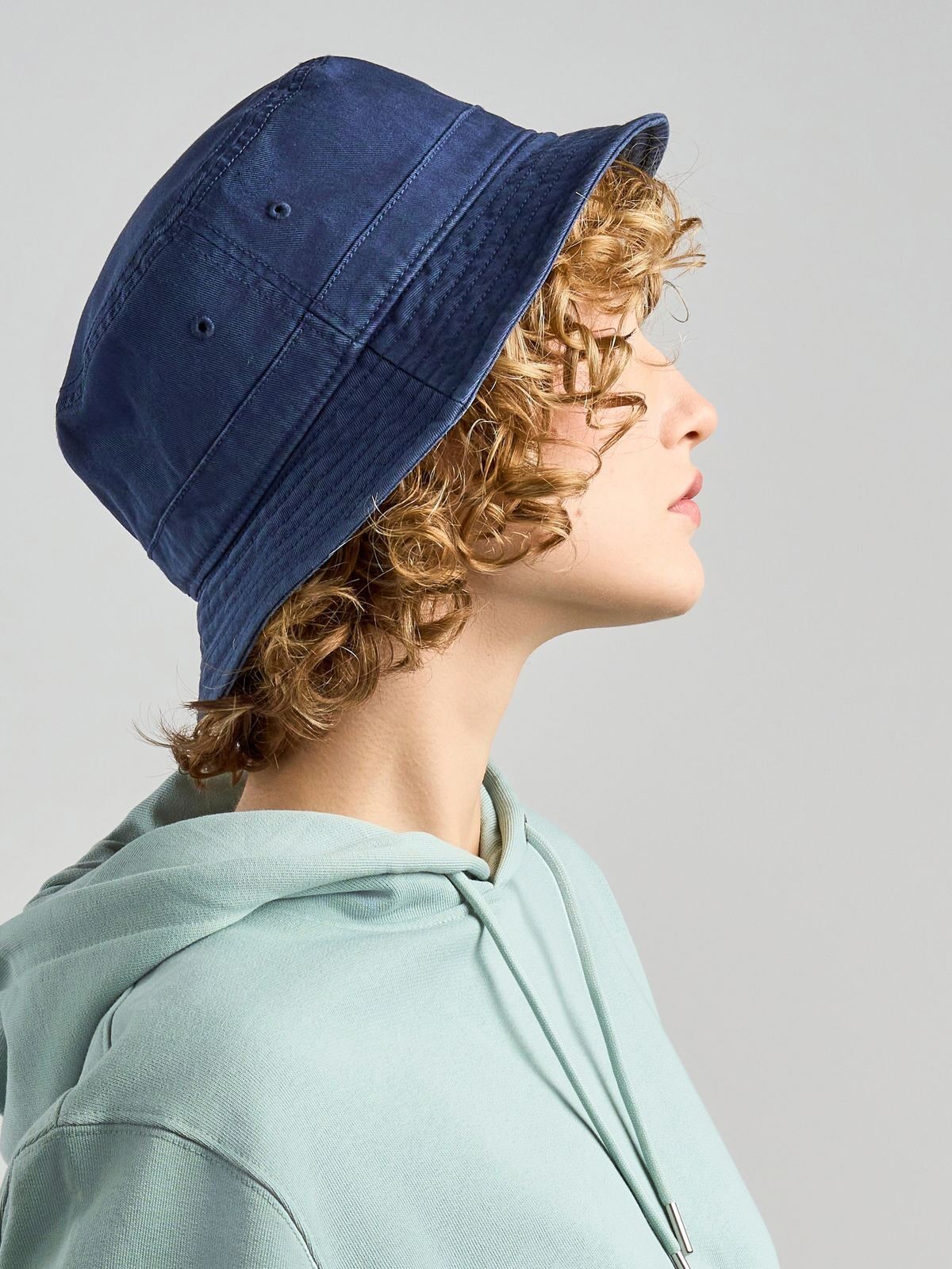 80% organic cotton, 20% recycled cotton. Fisherman's hat made of cotton twill, treated with double wash for softness.